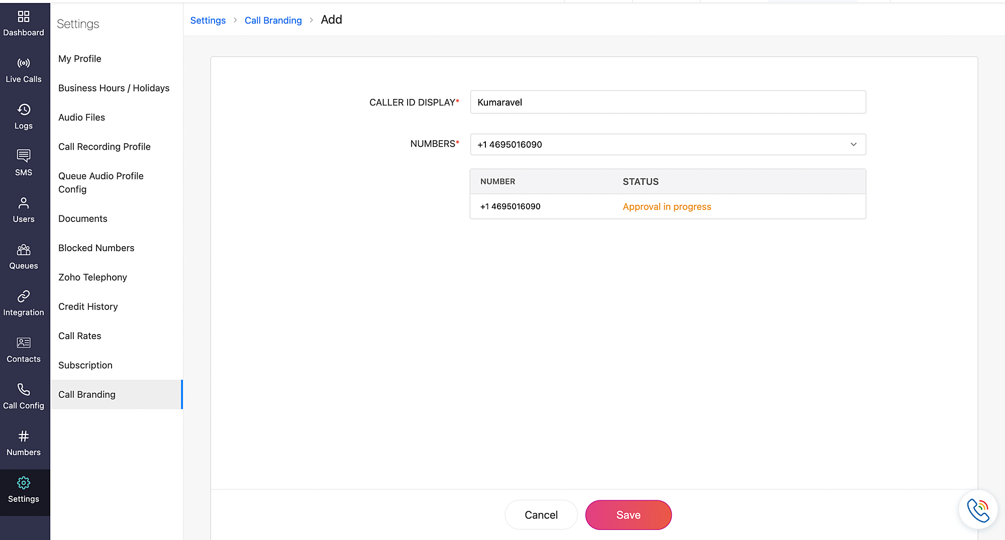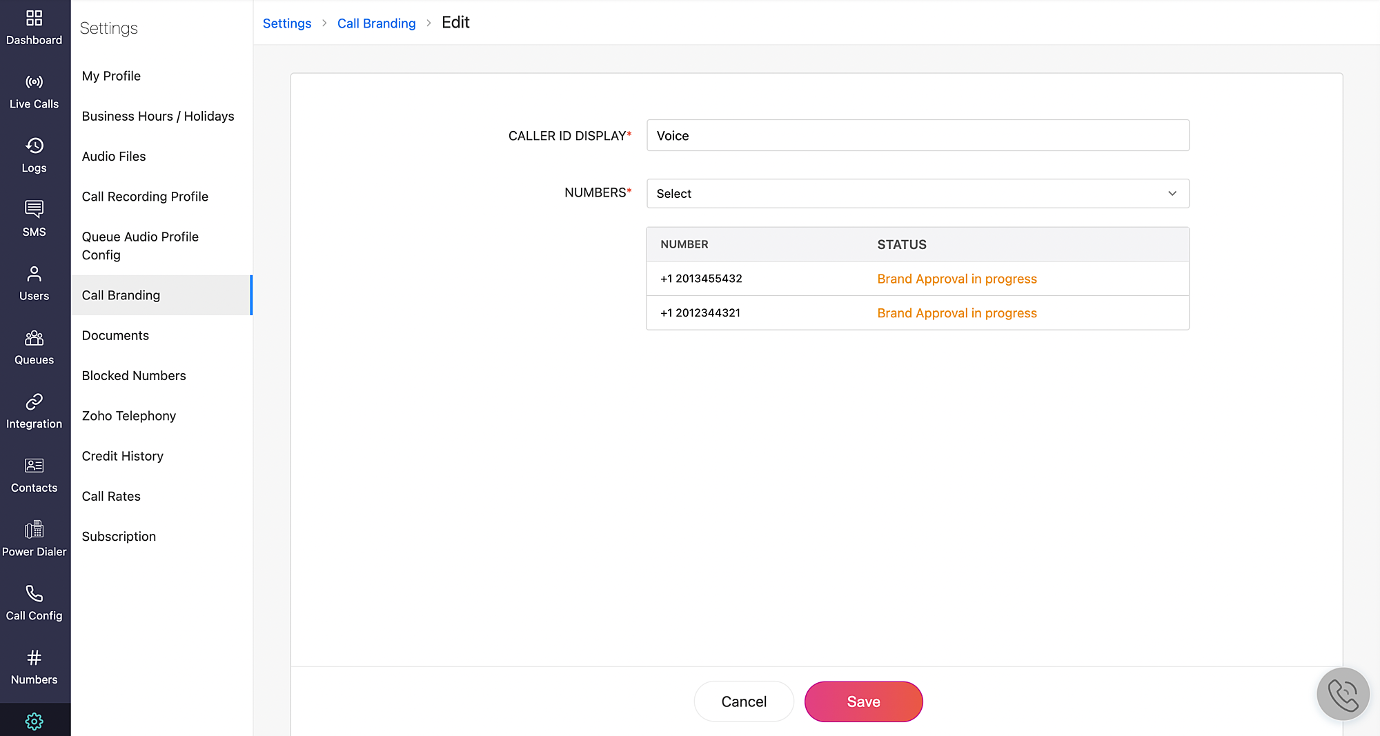 Follow the steps below to incorporate the new call branding service into your existing Zoho Voice setup.