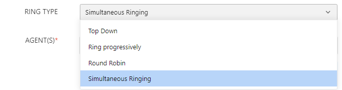 Ring-type selector allows you to select if you want the agents to receive a call simultaneously or in a sequential order.