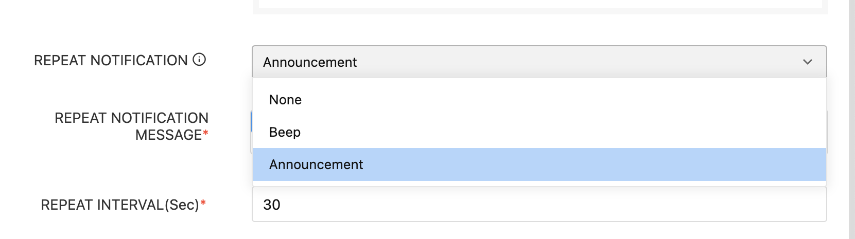 With the “Repeat Notifications” option, however long the call duration is, the call participants are notified with a custom-defined message or a beeping sound at regular intervals as defined in the “Regular Interval(s)” option. The regular intervals should not be less than 60 seconds. You can also choose not to have repeat notifications at all by choosing the “None” option.