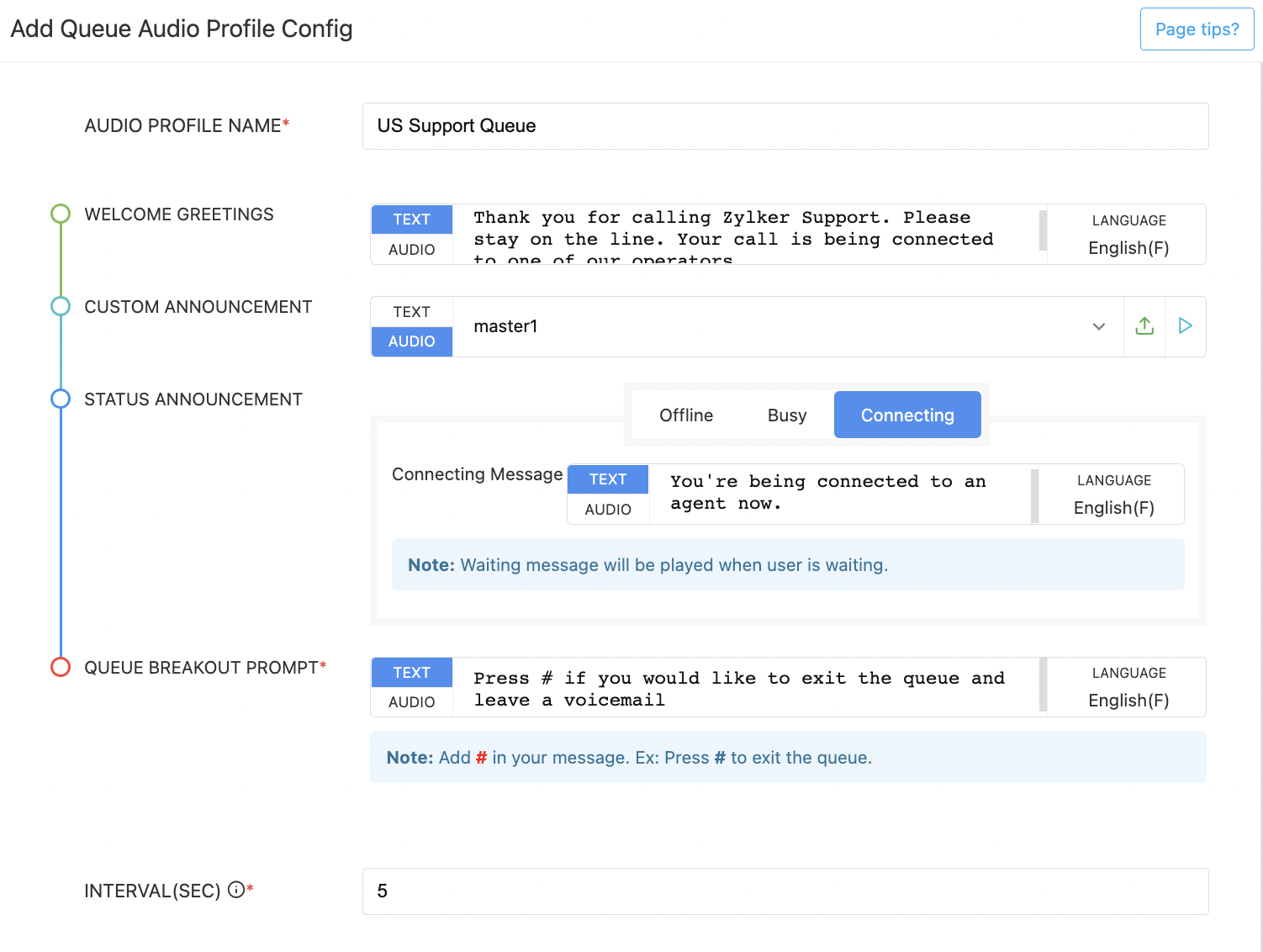 Queue Audio Profiles to allow you to configure the announcements and messages to be played while callers wait in a call queue. Check our