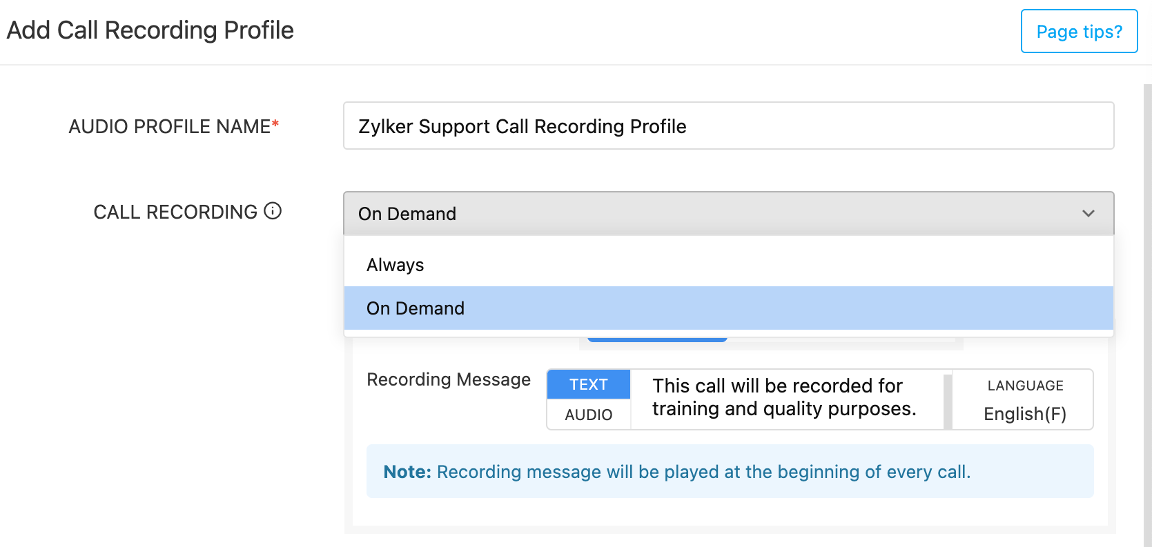 Previously in Zoho Voice, inbound and outbound calls were only recorded automatically. By introducing a new feature, Call Recording Profile, Zoho Voice enables you to record calls either automatically or on demand. All you have to do is create or edit an existing call recording profile and simply associate that profile with the Zoho Voice number of your choice. For each number, it’s essential that you specify the call recording profile for inbound and outbound calls separately.