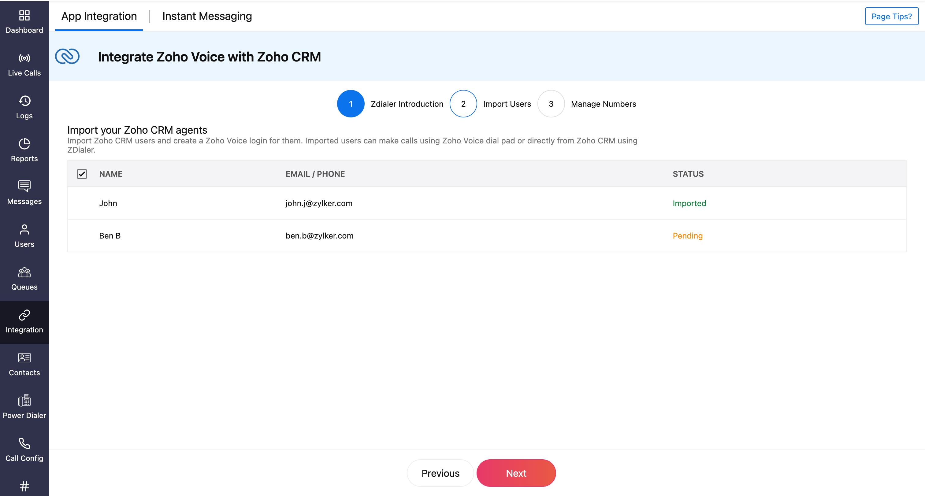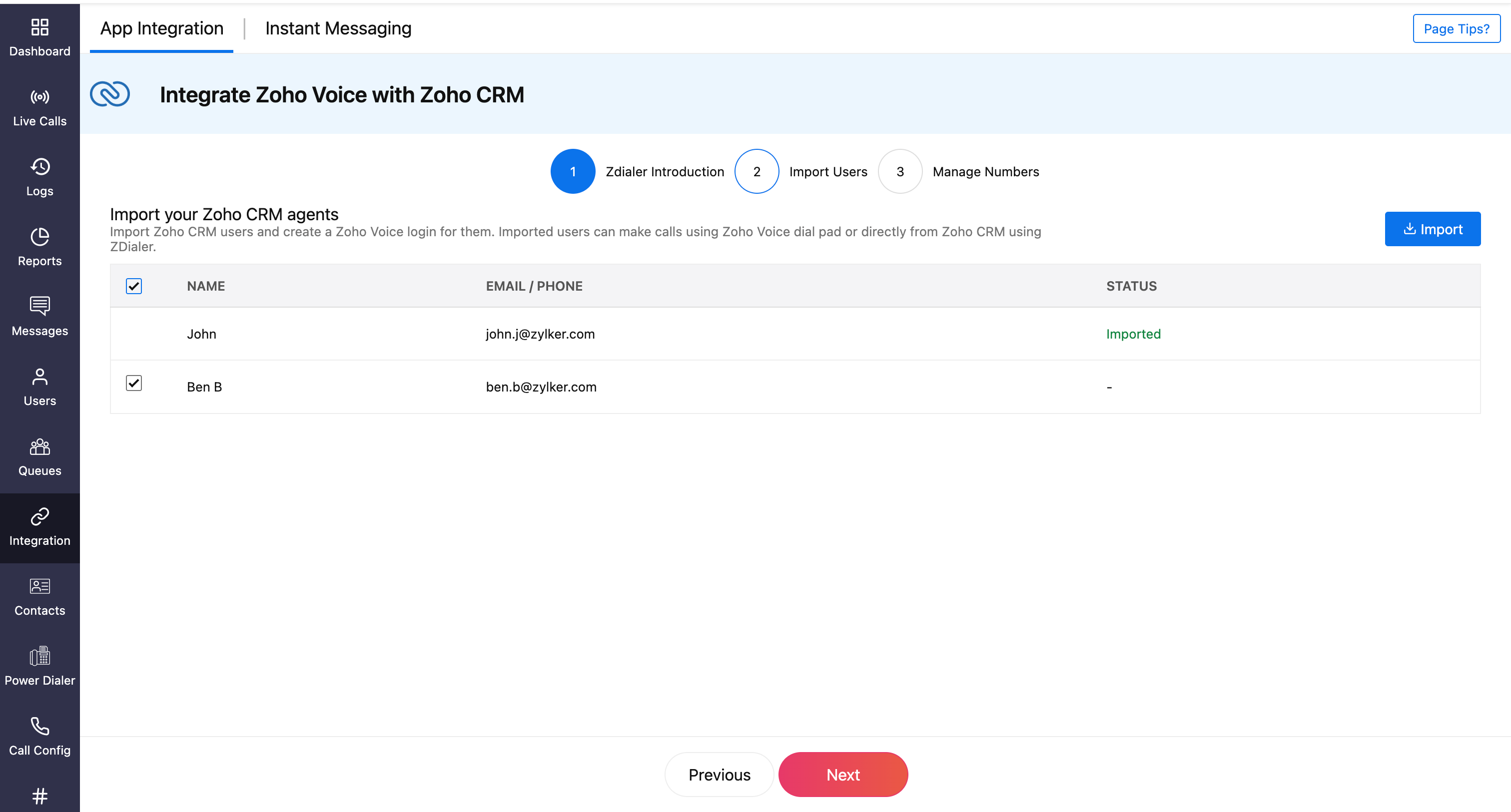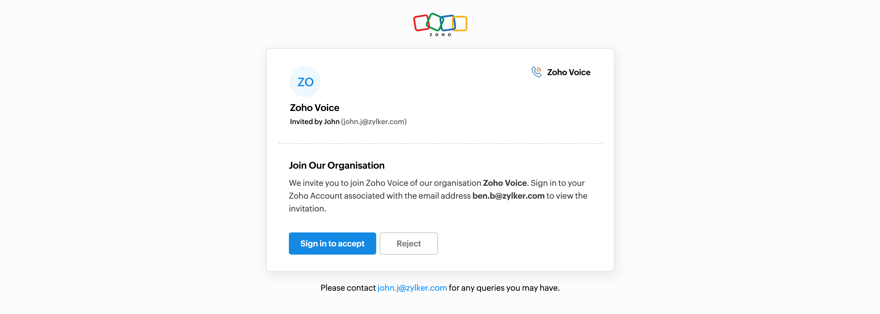 Imported users will receive an email invite. Once they have accepted, they’ll be added to your Zoho Voice account.
