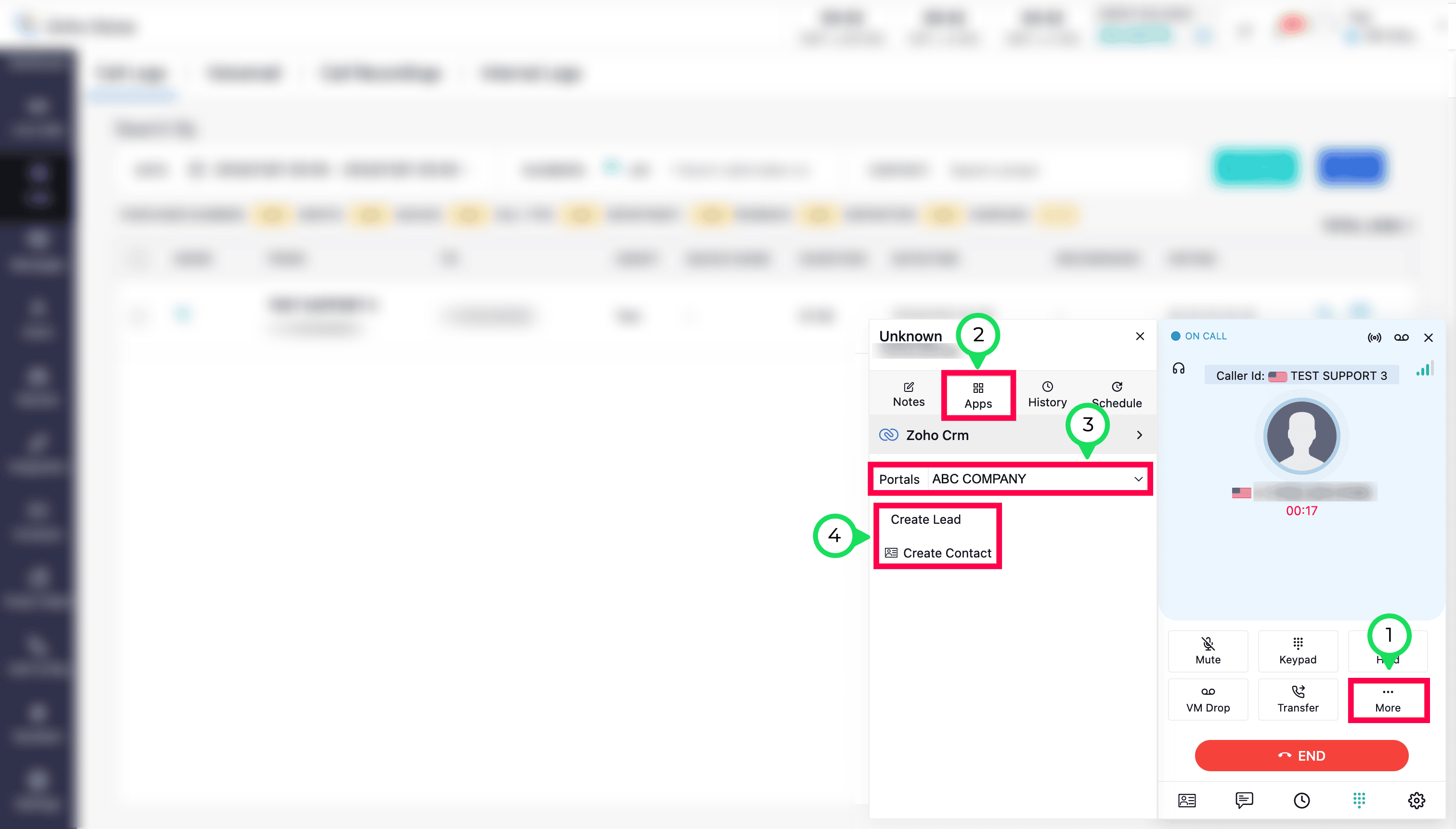 While on a call, if the caller's number is associated with a contact or lead in Zoho CRM, you can easily schedule a follow up call using the following steps: