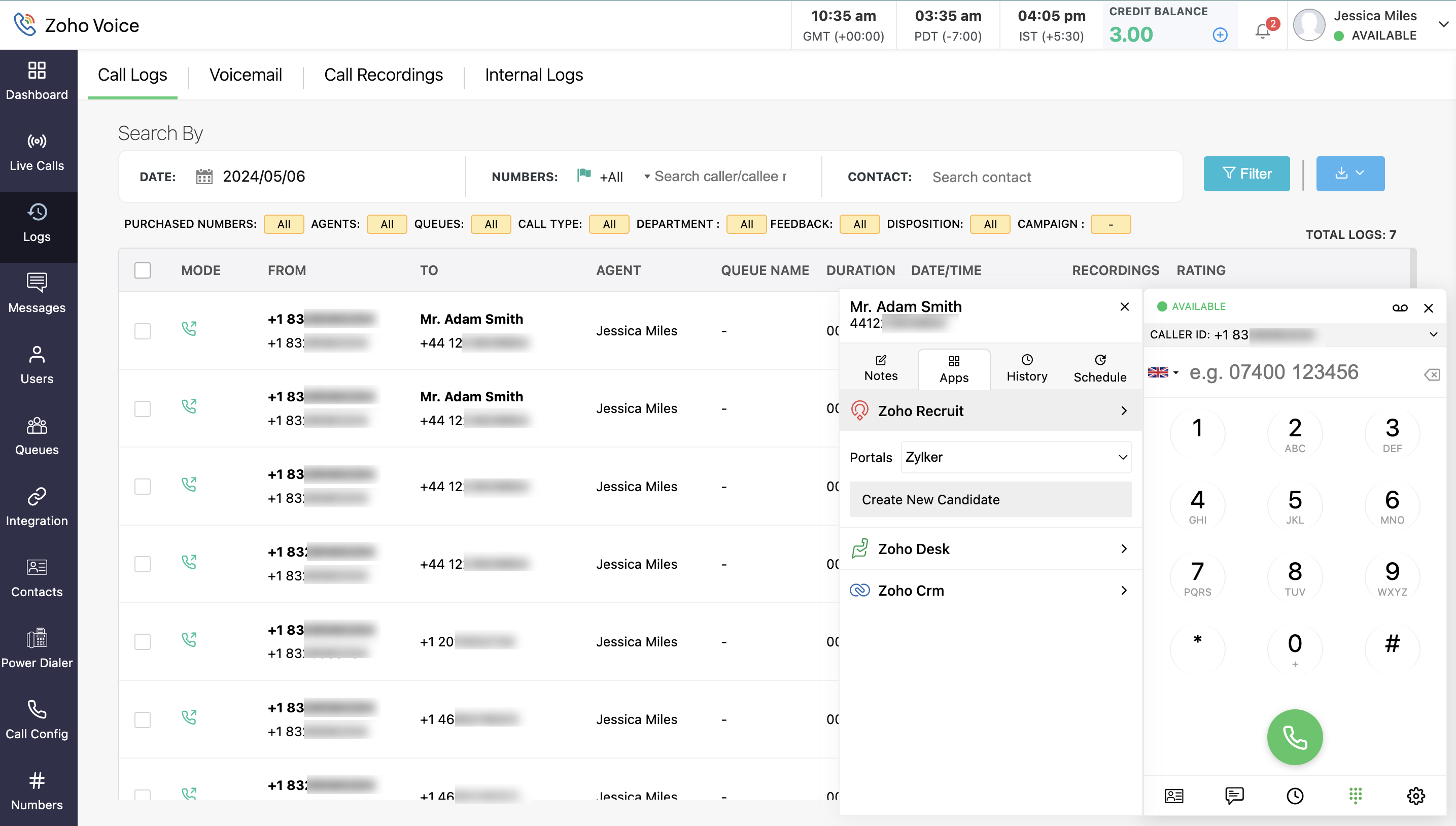 1. Making and receiving calls directly from Zoho Recruit using ZDialer.