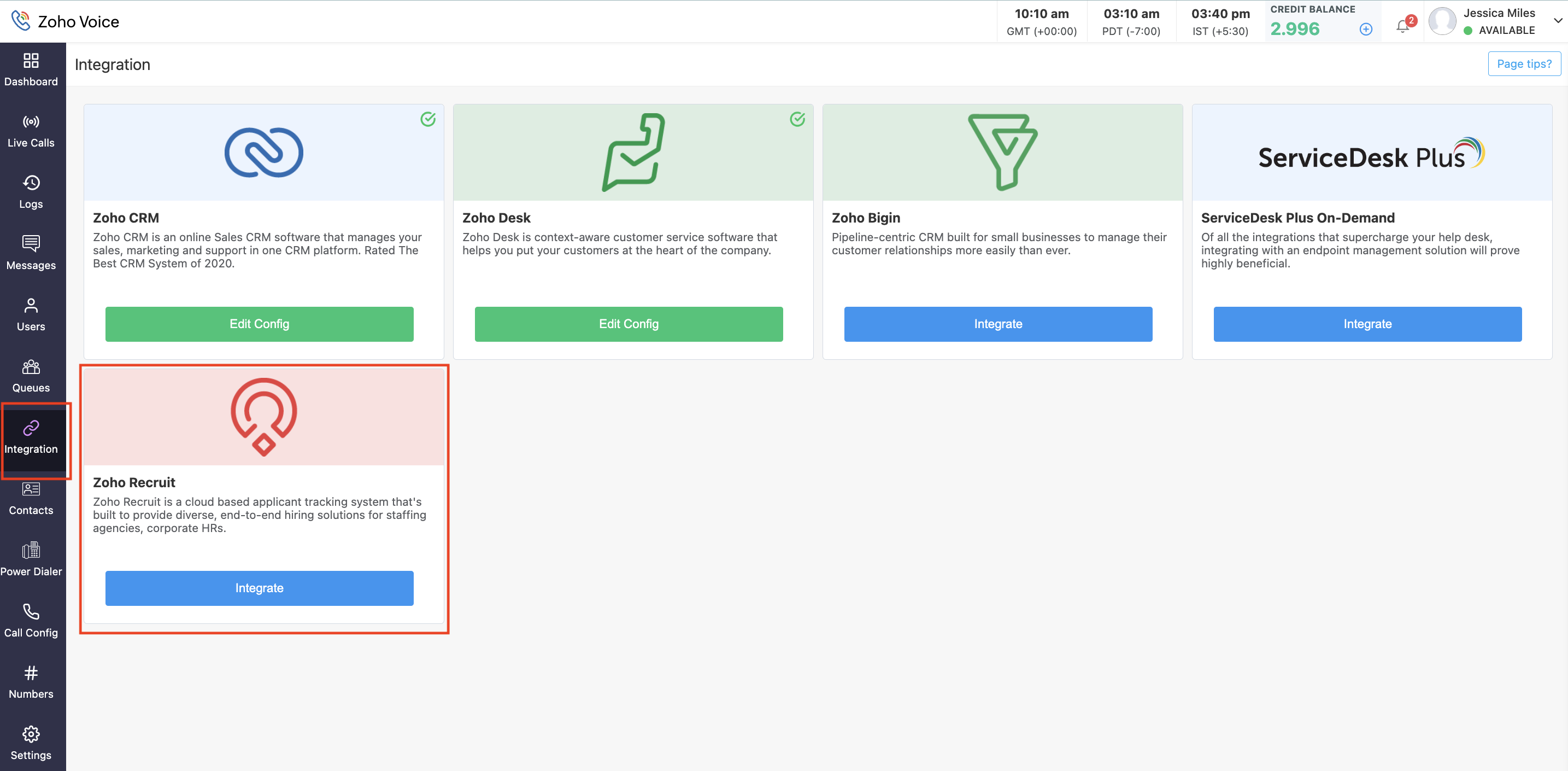 How to integrate Zoho Voice and Zoho Recruit via Native Integration: