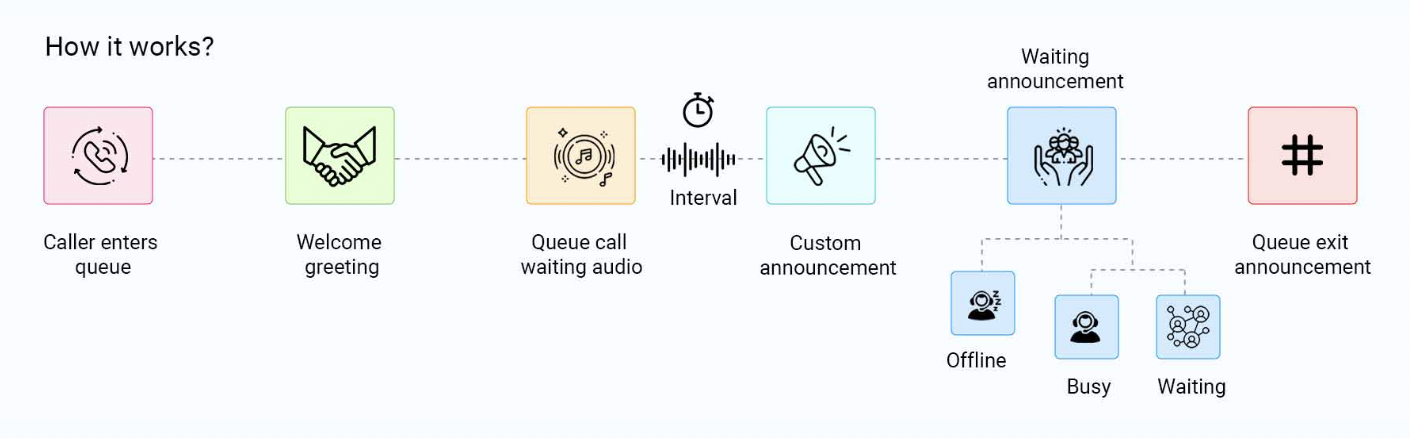 1.You have been added as an agent in the queue "queue name", and will receive calls assigned to that queue.