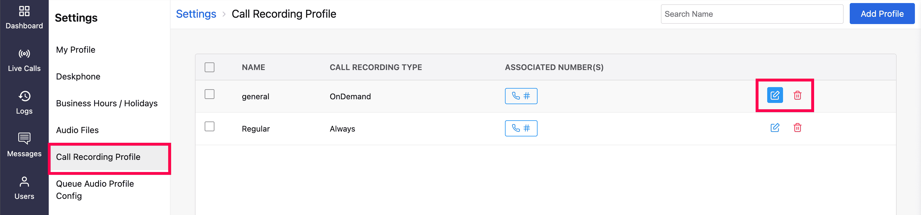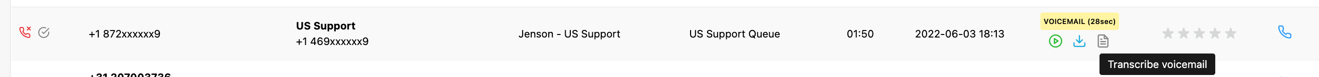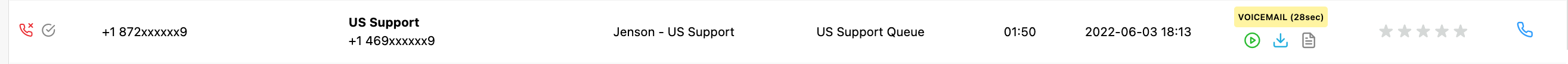 Call recordings and voicemails for the calls can be played or downloaded from the Logs page.
