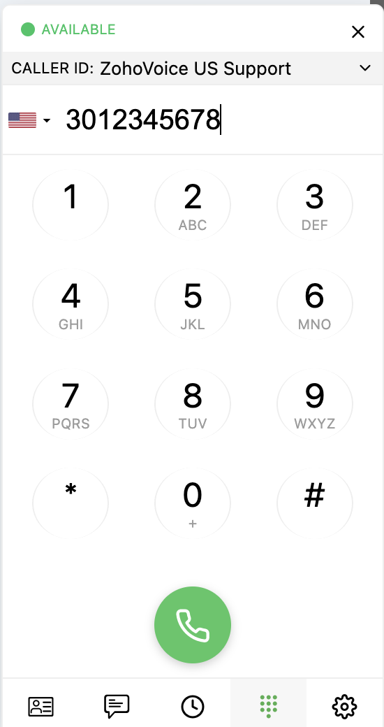 - Use the Zoho Voice dial pad to initiate or receive calls.