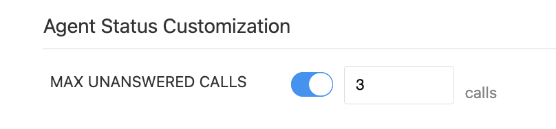 - Under Agent Status Customization, set a number for Max Unanswered Calls.