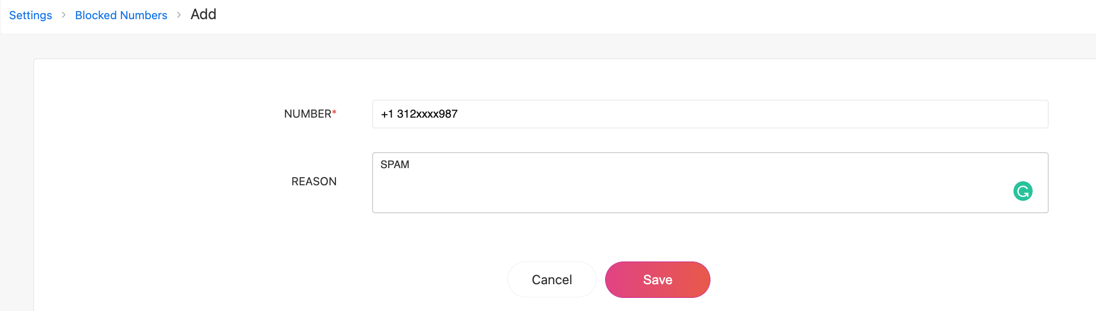 2. The number you purchased(+1 312XXXX789) has been rejected.