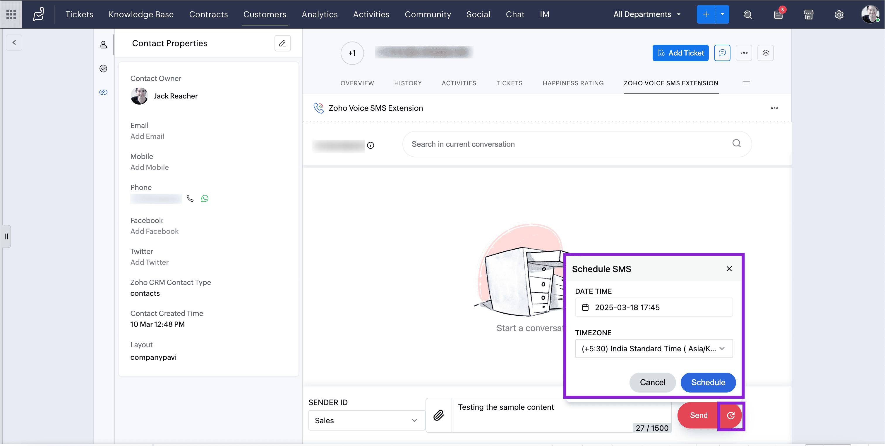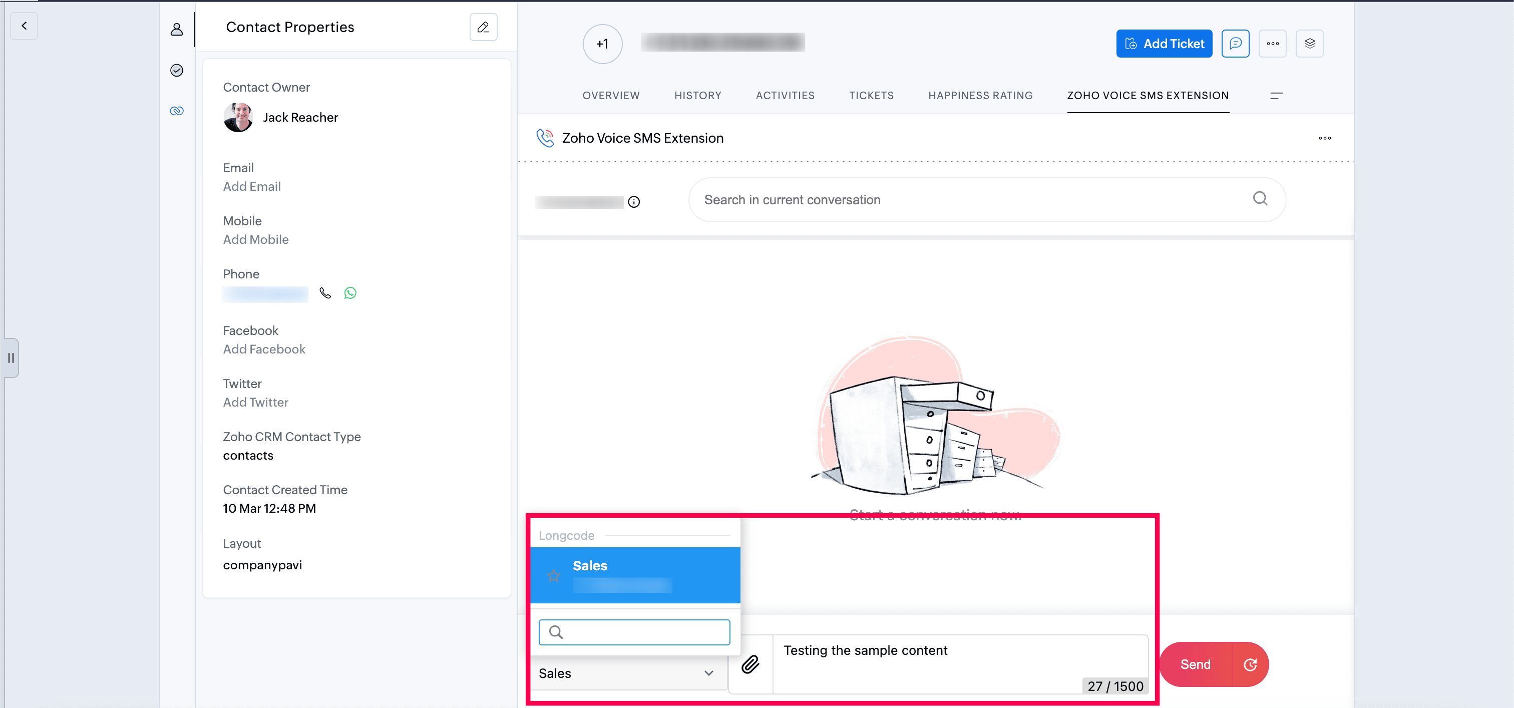 Send SMS/MMS in Zoho Desk using this extension