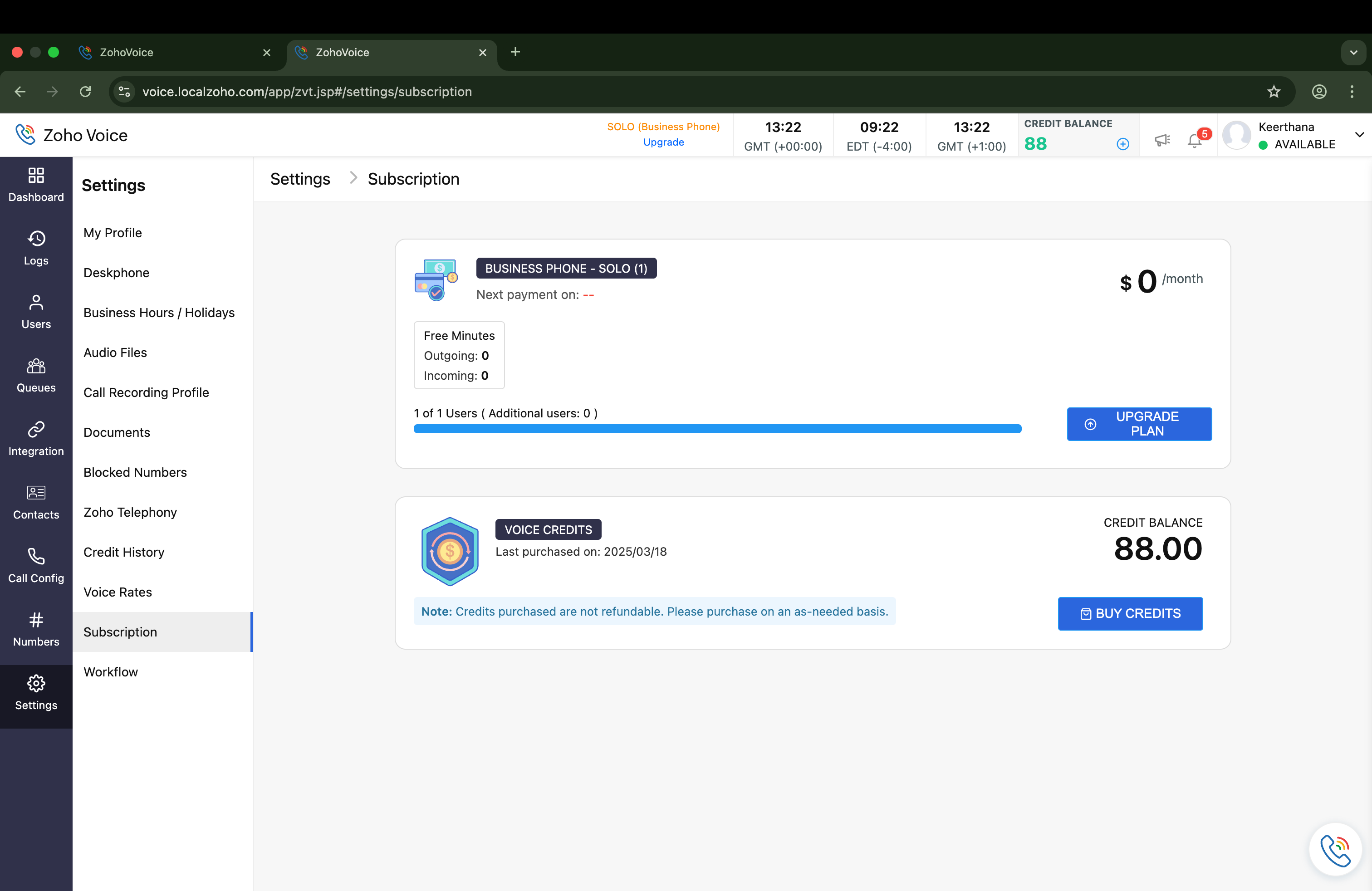 Once the payment is successful, your Zoho Voice organization will be upgraded to SOLO+ user add-on