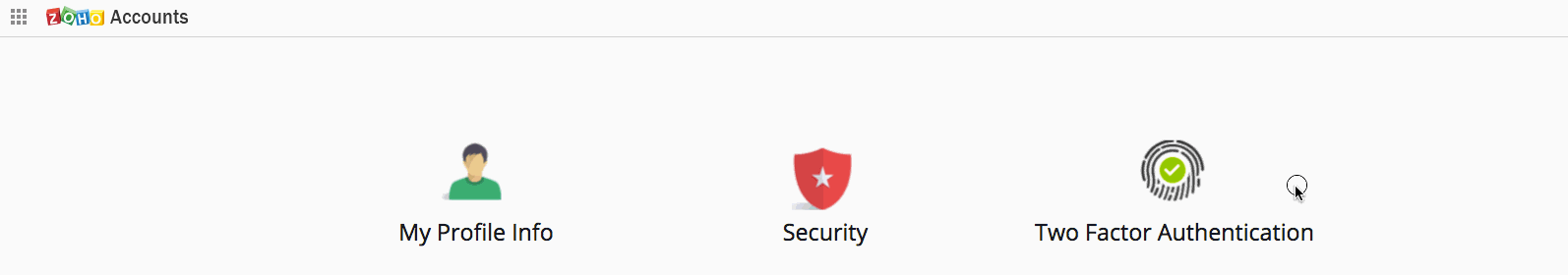 3. Click the switch to disable two factor authentication. For more details, visit https://www.zoho.com/accounts/help/tfa-overview.html