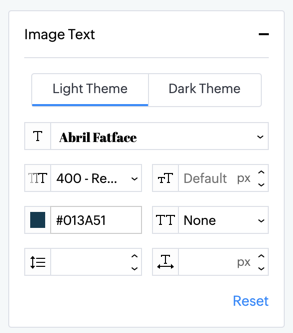 Use the properties under the Text tab to make changes to the design aspect of text content.