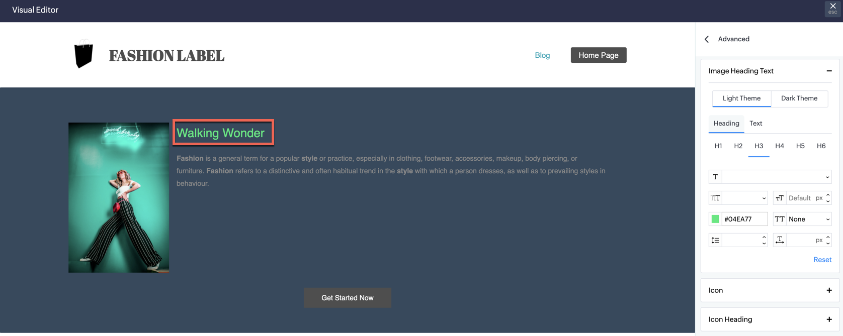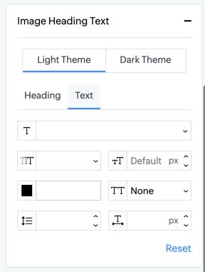 Use the properties under Heading to make changes in the design aspect of heading content.
