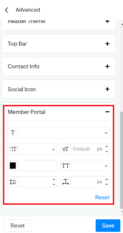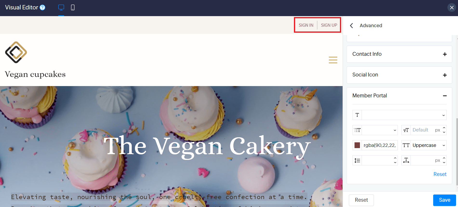 The member portal allows you to maintain a member list for your website. You can have visitors sign up at your website, invite them to join your website group, and restrict access to pages and files from your website. You can edit the member portal login properties, which will display at the top of your website.