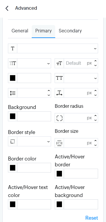 4. You can edit your primary menu under the Primary tab. You will find options to edit font style, font thickness, font size, font color, letter case, line height, and letter spacing. You can also change the border radius, style, and style of the menu. Additionally, you can add a color of your choice to the menu background, active/hover border (border of the menu option you are hovering over), active/hover text, and hover background.
