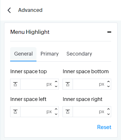 3. Under the General tab, you can change the inner space of the menu within a highlight box according to your preference.