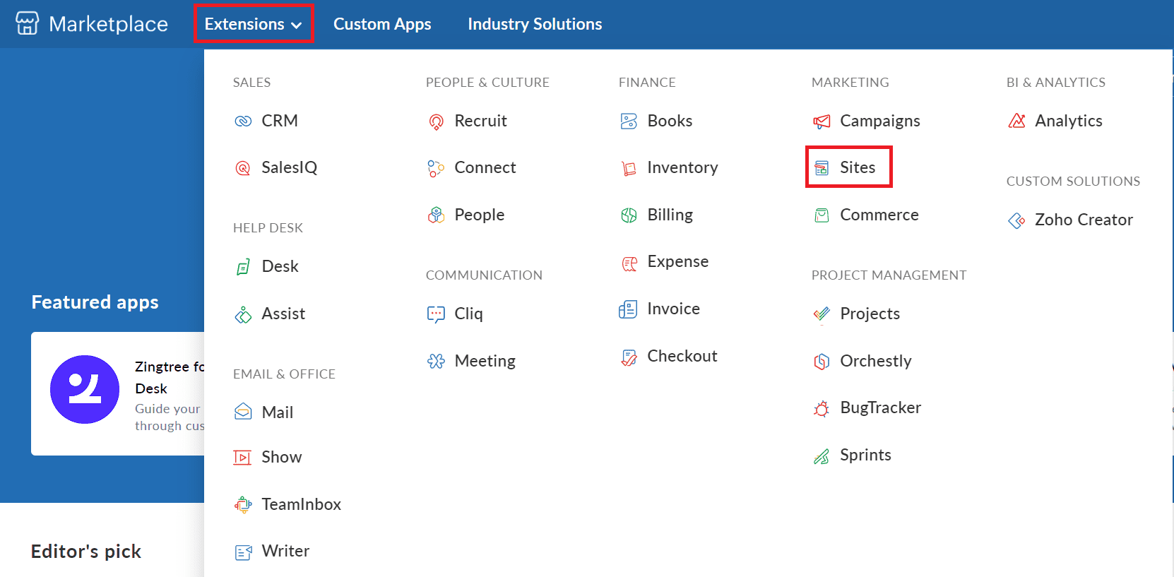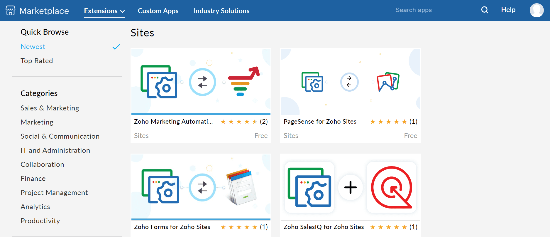 Zoho has its very own app store where you can find all the required apps in one place.