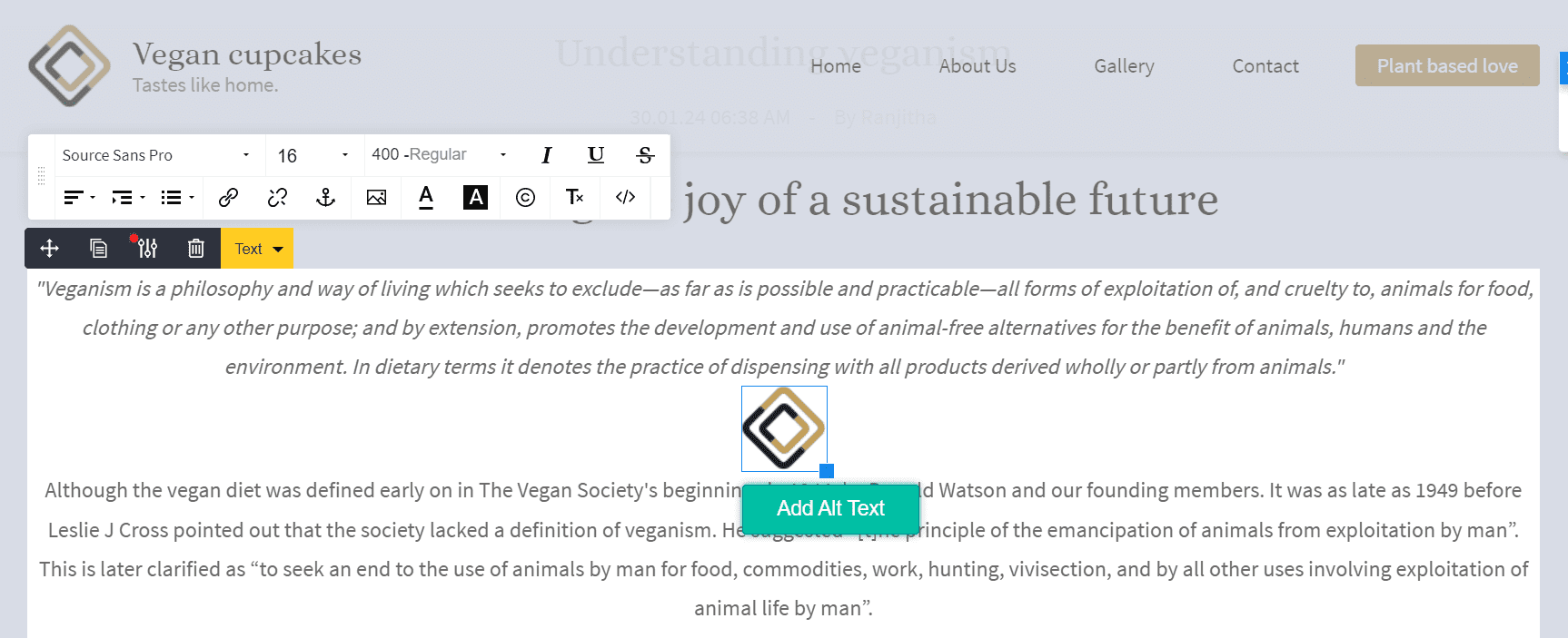 2. Select the inserted image and click the Add Alt Text button. In the popup, enter the alt text and click Save.