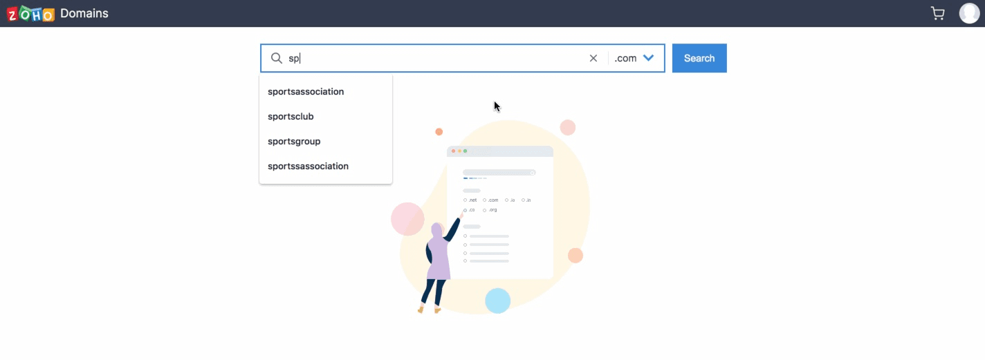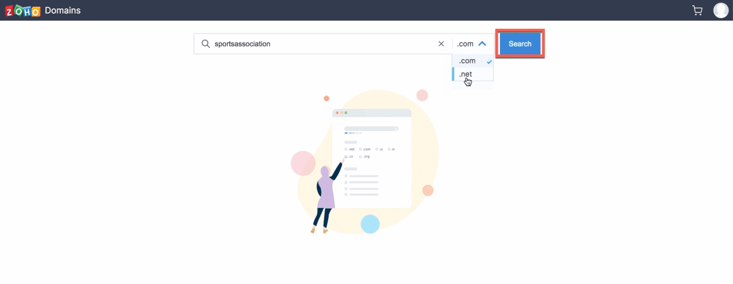 You will be redirected to Zoho Domains. In the search bar, provide the domain name that you're looking forward to purchase.