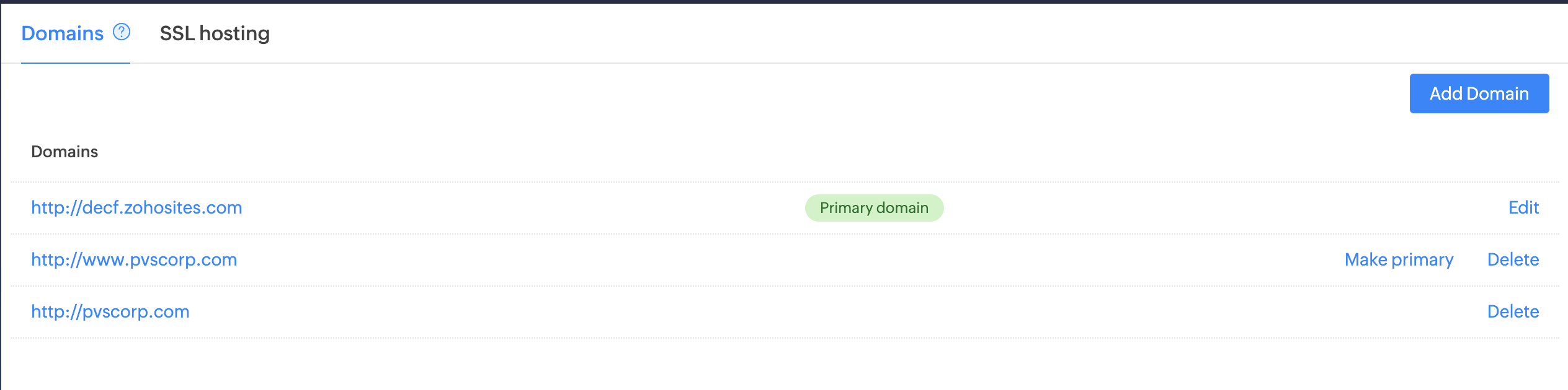 The primary domain will be displayed in the address bar of a web browser when the site is accessed. It is not possible to set the root domain (domain name without www) as the primary domain in Zoho Sites.