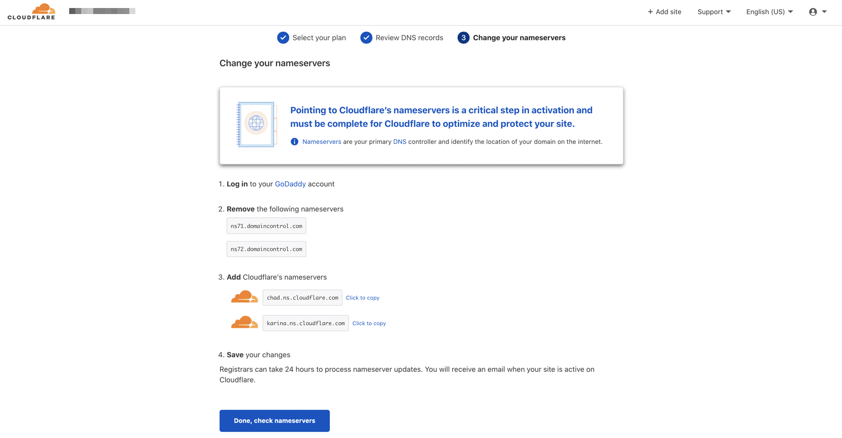 Follow the on-screen instructions to update the name servers in your DNS manager.