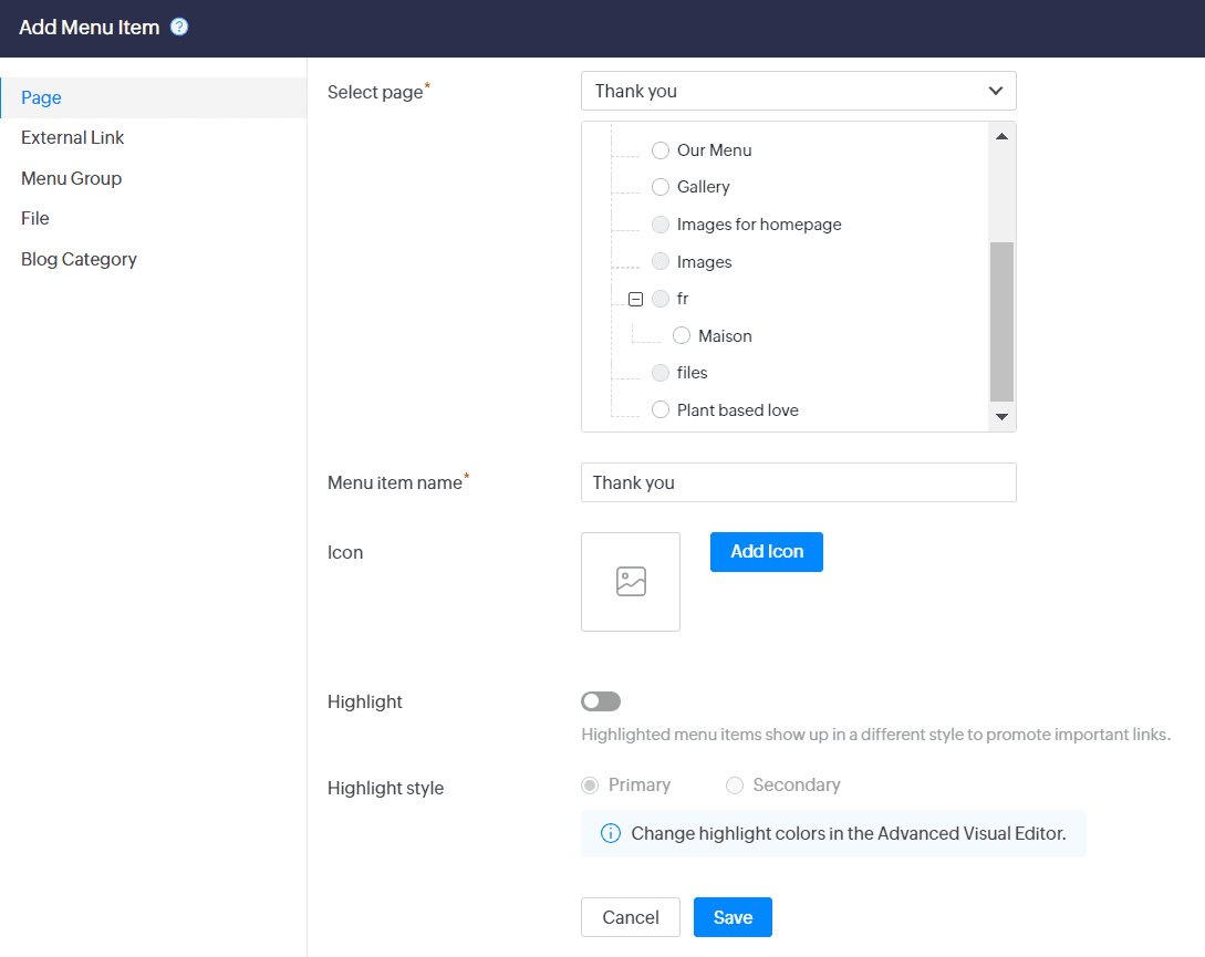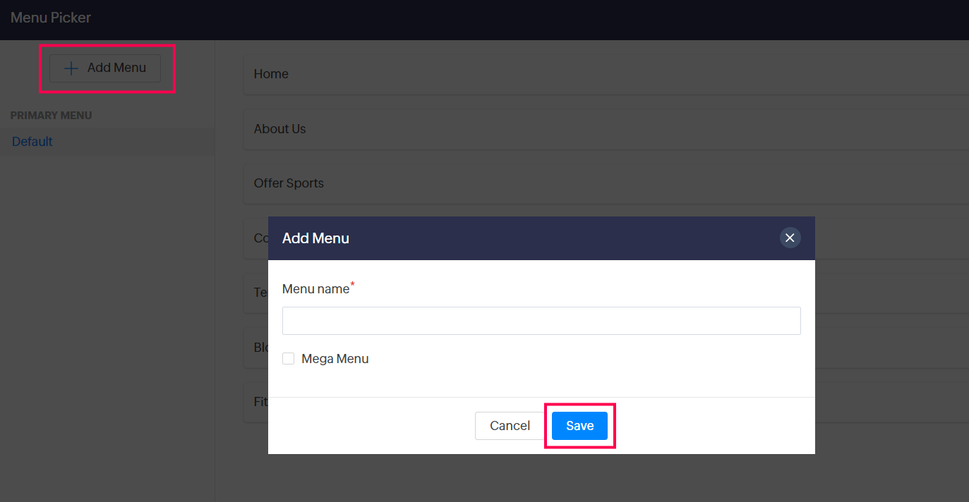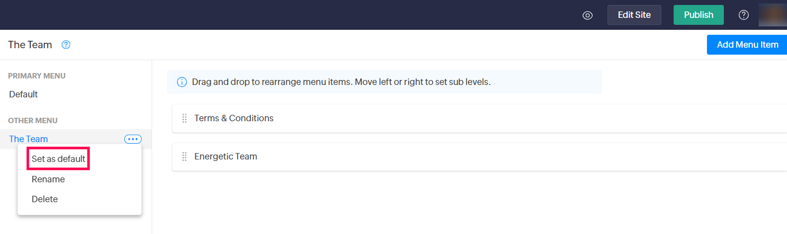The Multiple Menu feature enables you to have more than one menu on any page, allowing quick navigation. You can either replicate the same menu across all your website pages, or create a new menu on every page. The menu that appears across every page is called the default menu.