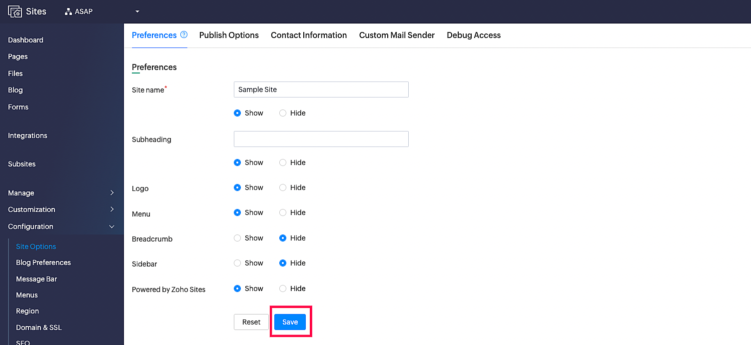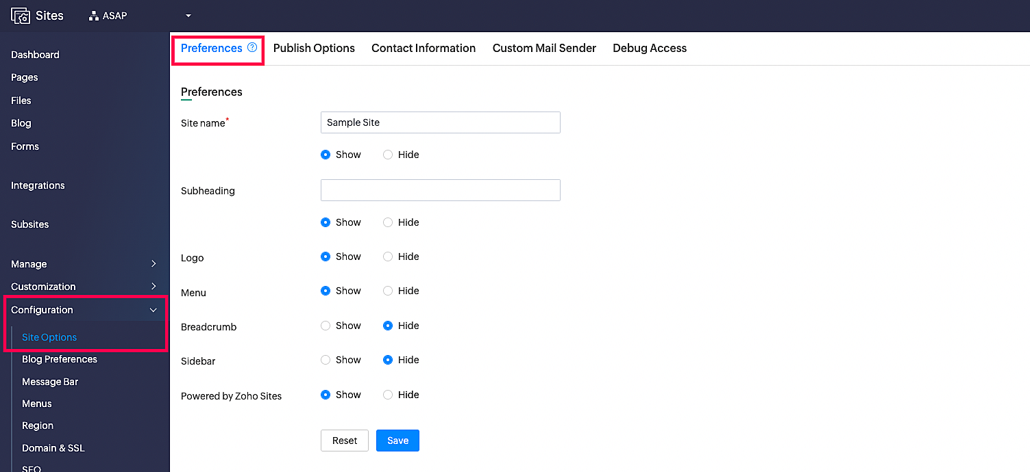 3. Customize your preferences as per your requirement. You can opt to show or hide different site-wide elements from this section.
