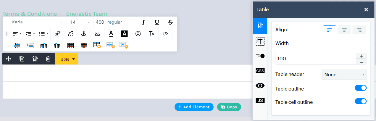 The table element helps you organize and present data on your website.