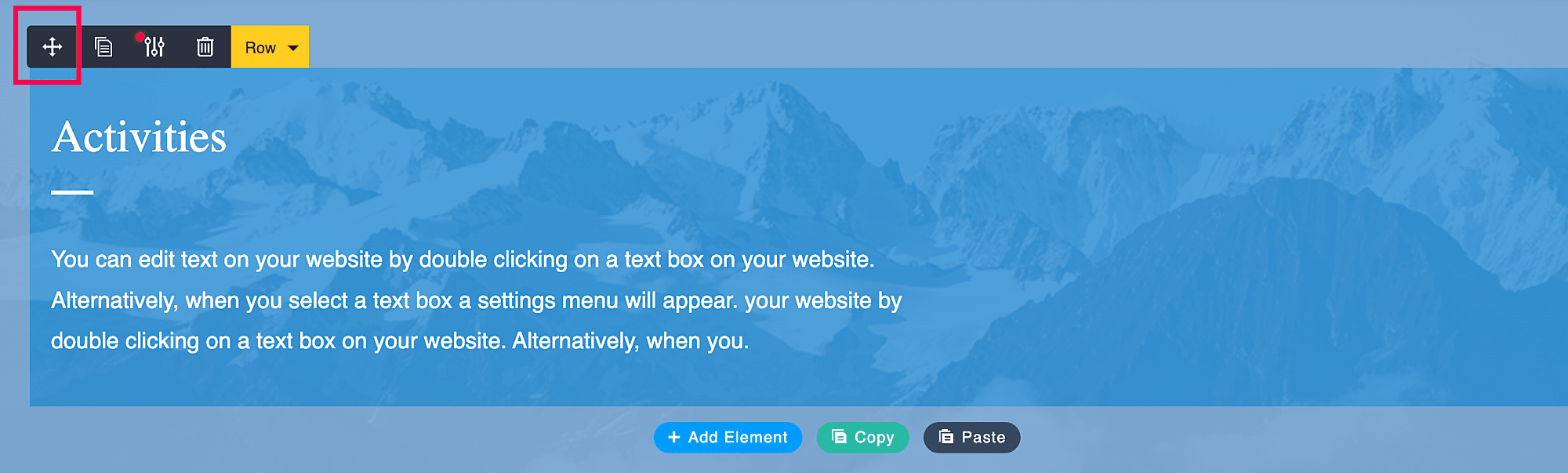 Each element comes with its own set of customization options. You can find these tools alongside the element after you have added it to your page. They also appear when you click an element.