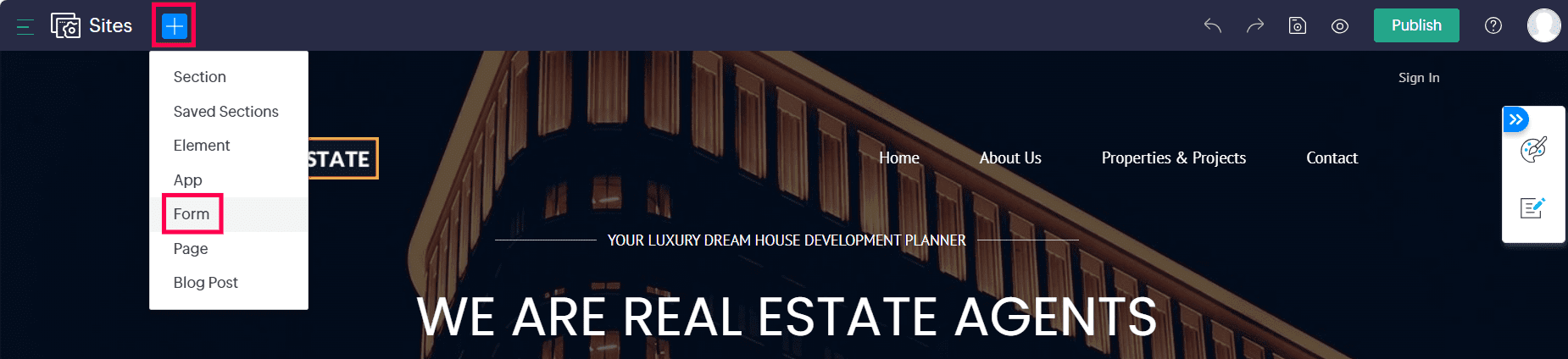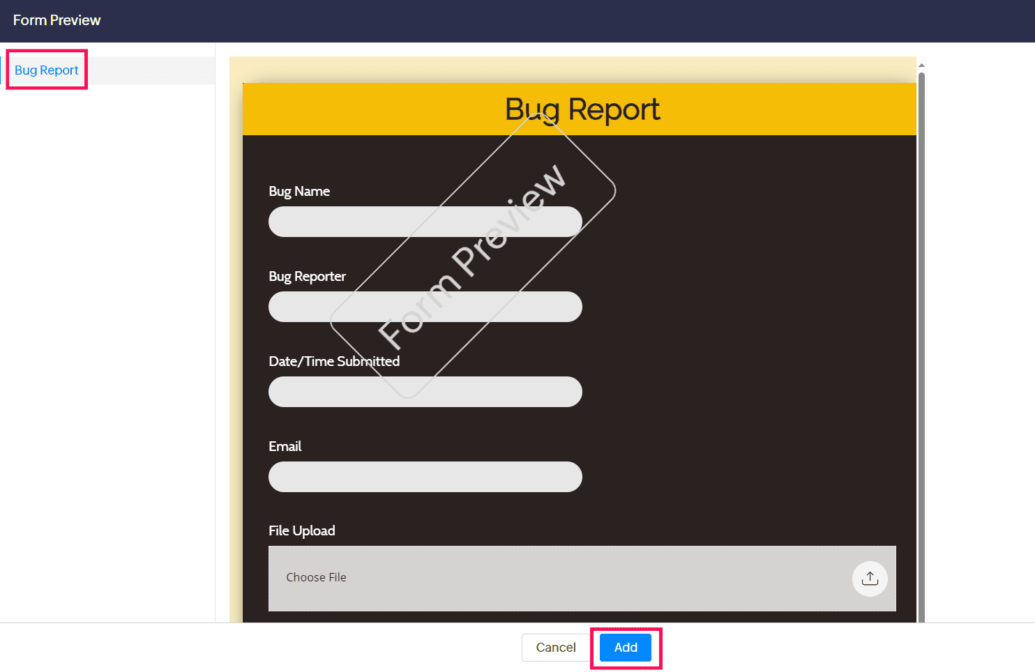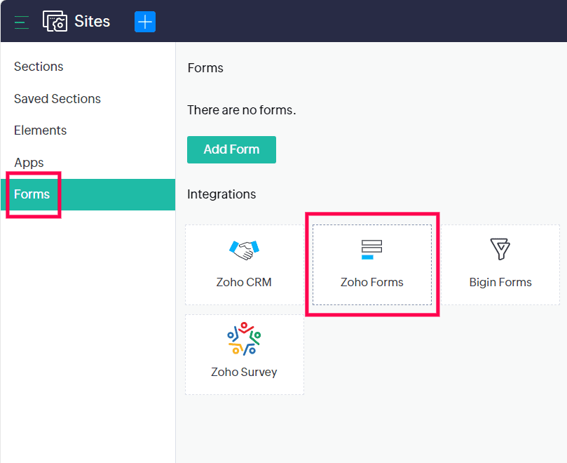 Select the form you wish to add to your webpage from the left pane, then click Add.