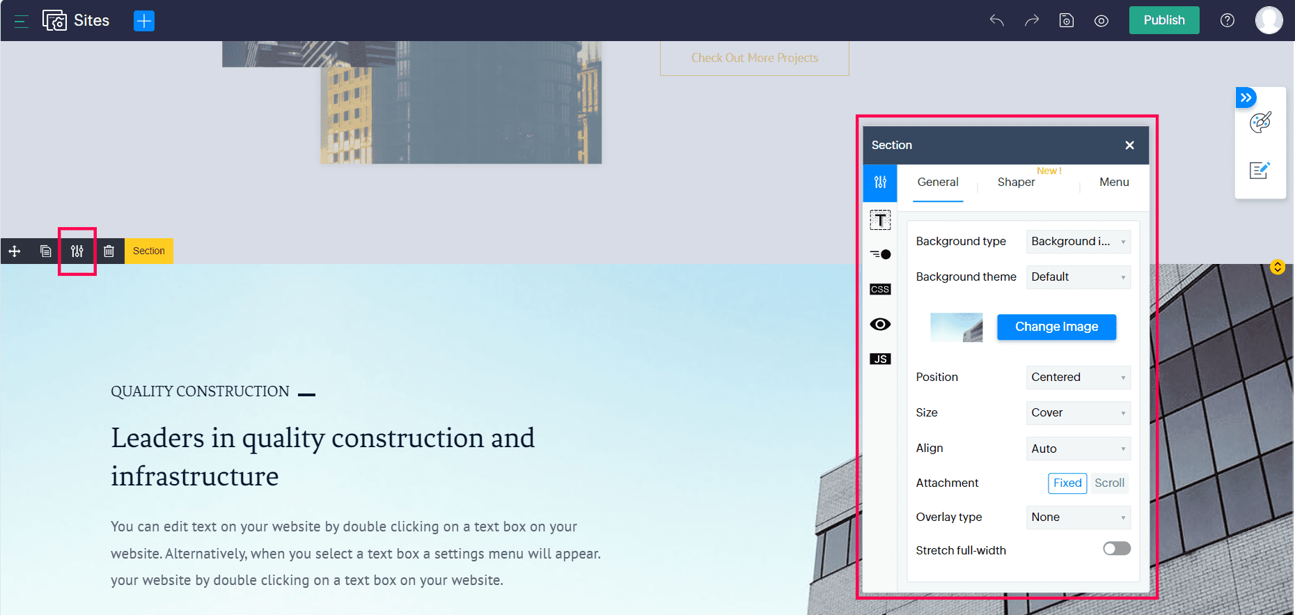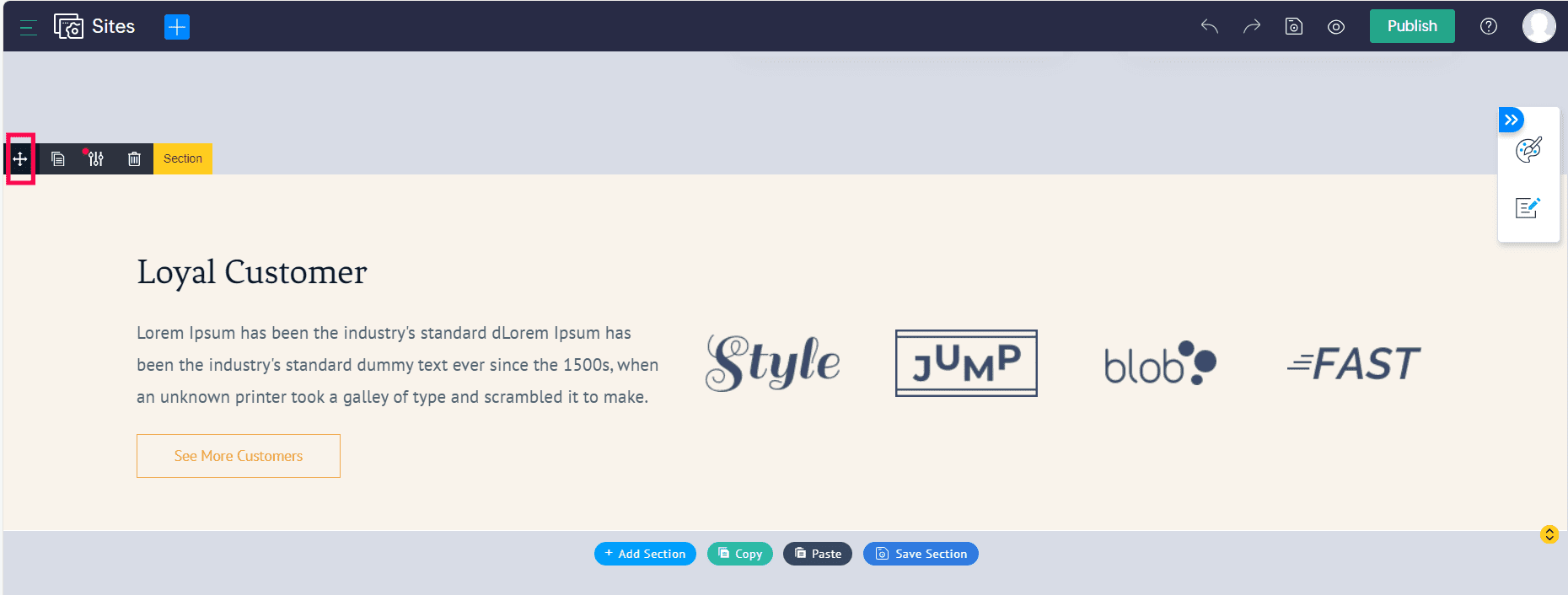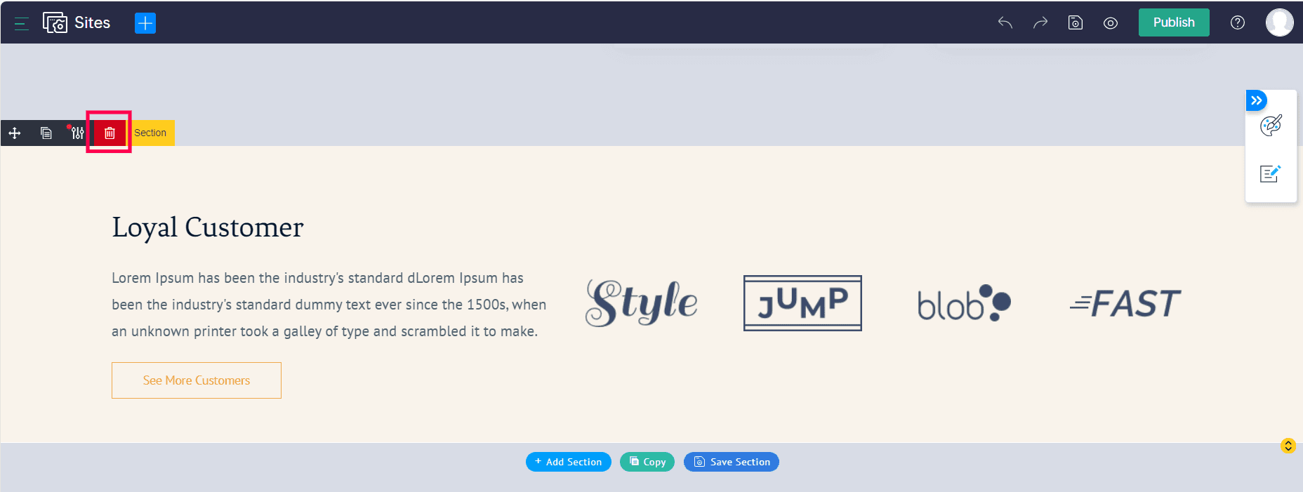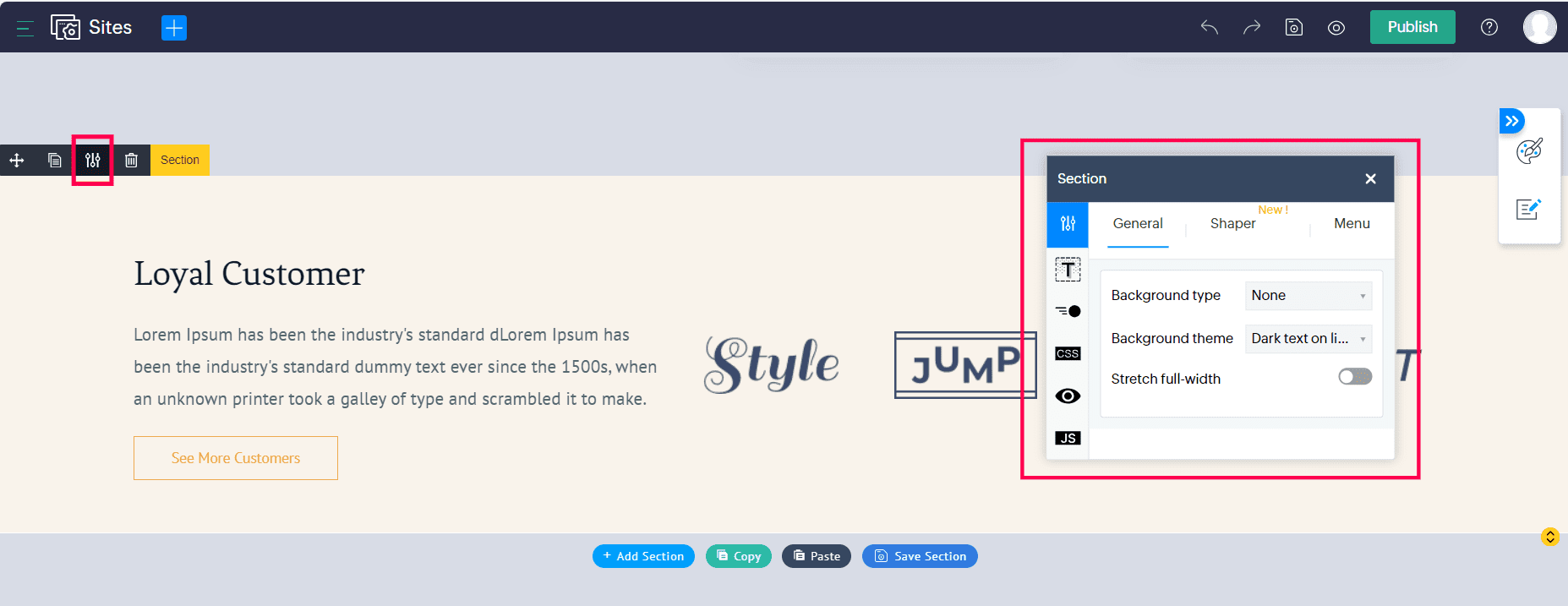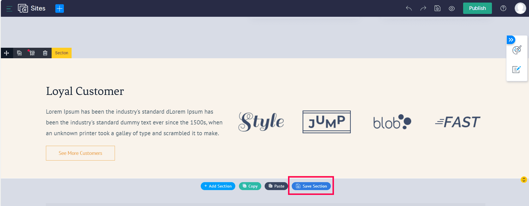 You can save and reuse customized sections wherever needed. To do so, access the section. Click the Save Section button.