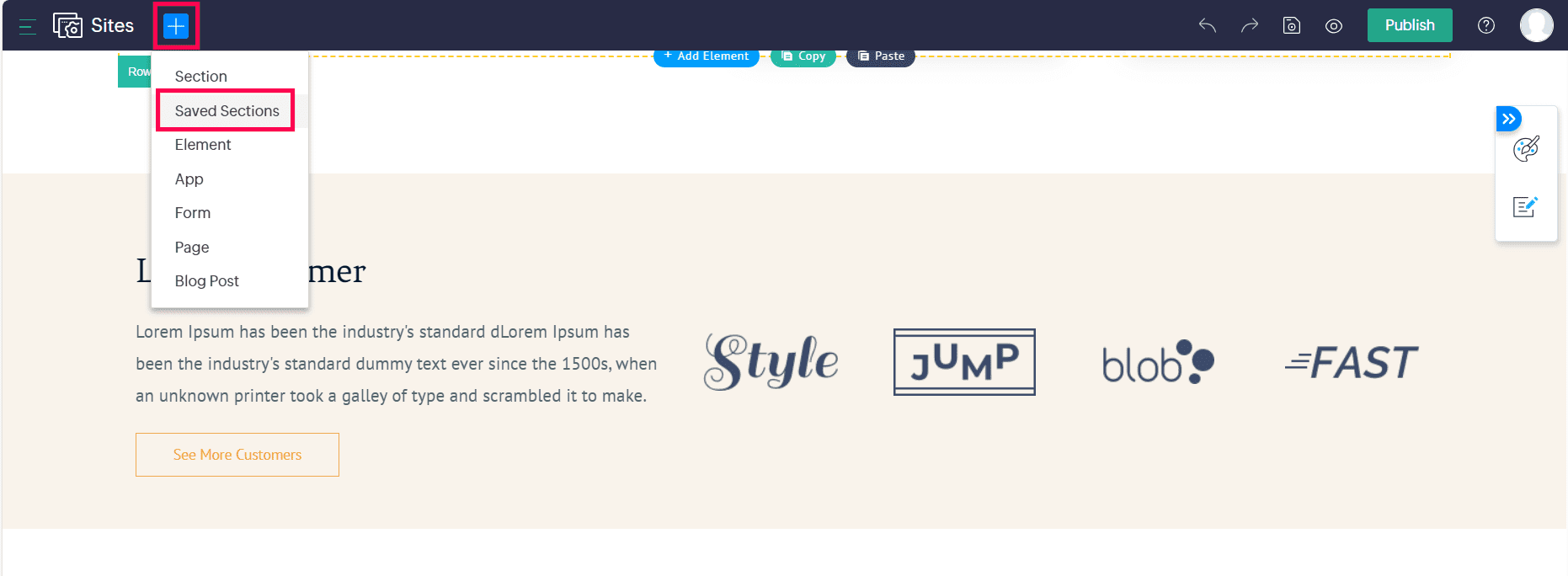 All the sections that you have saved will be listed. You can drag and drop the desired section.