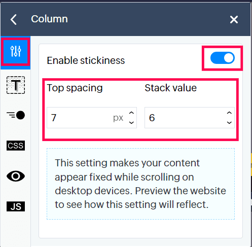 The Sticky effect will not reflect on your builder. You will have to preview your website to view how this feature will appear.