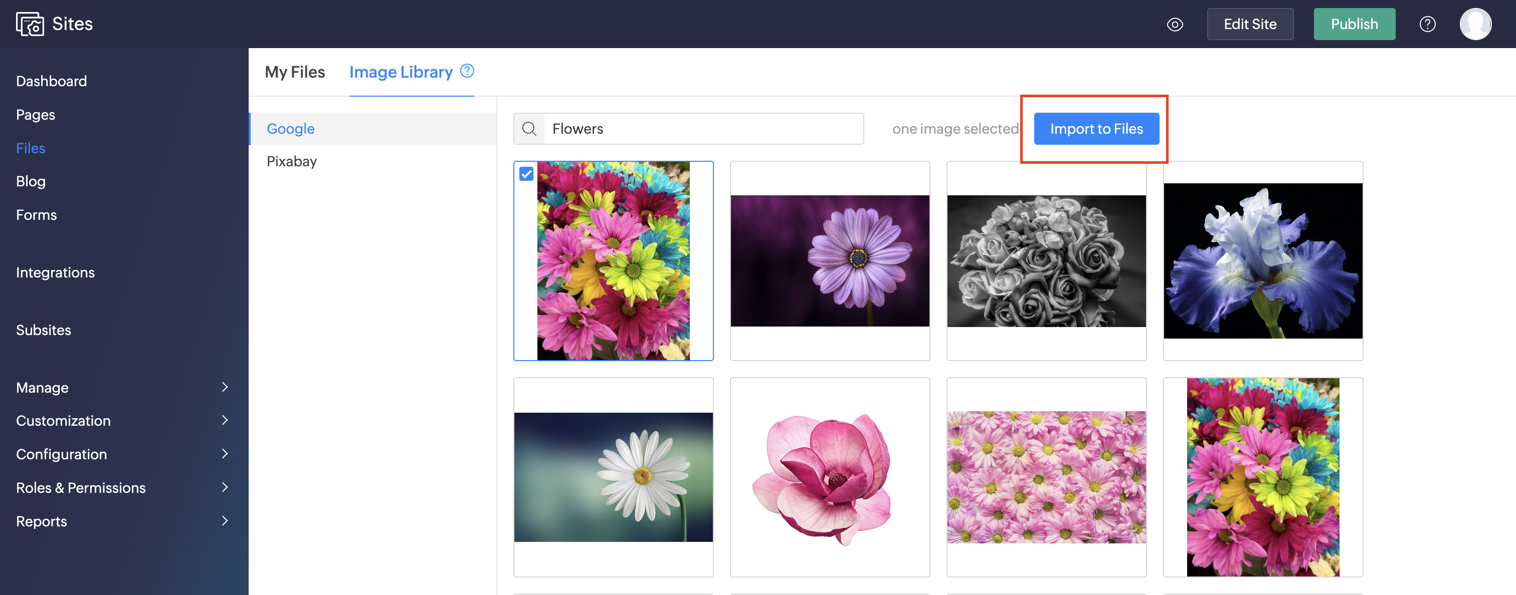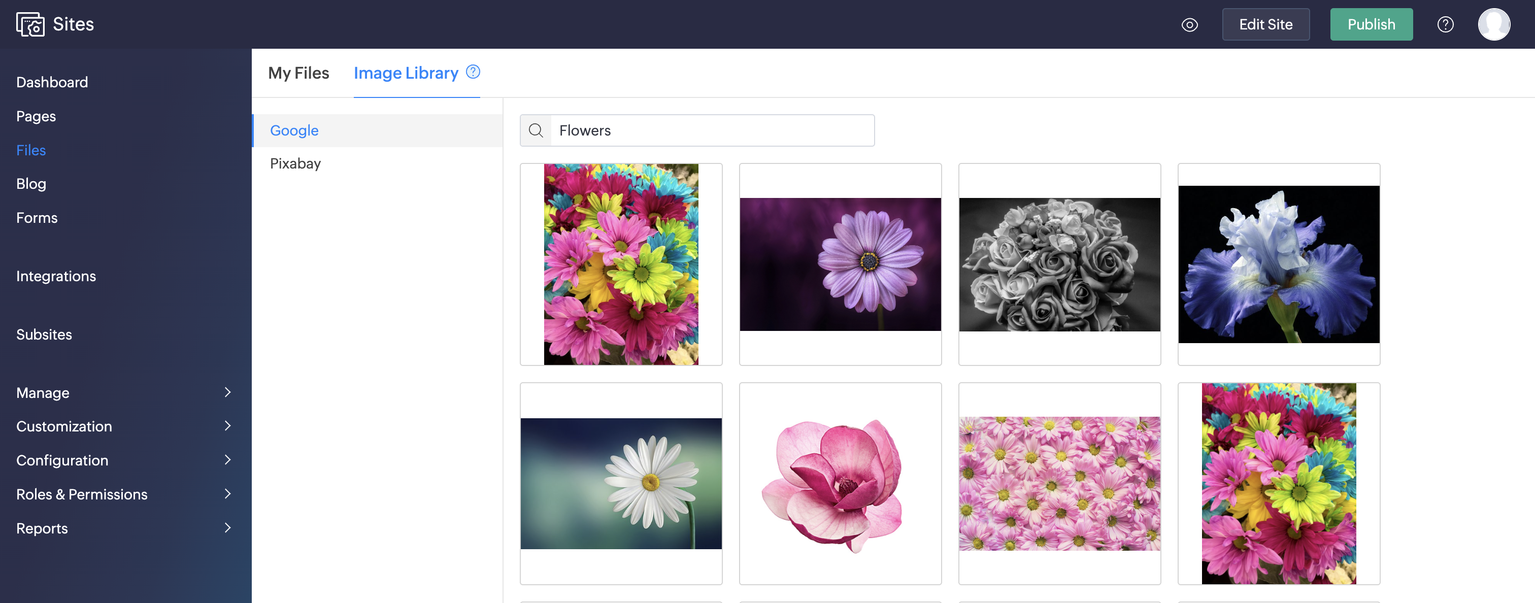 Files allow storage of images, and documents that are used on your website. All images stored here will be optimized.