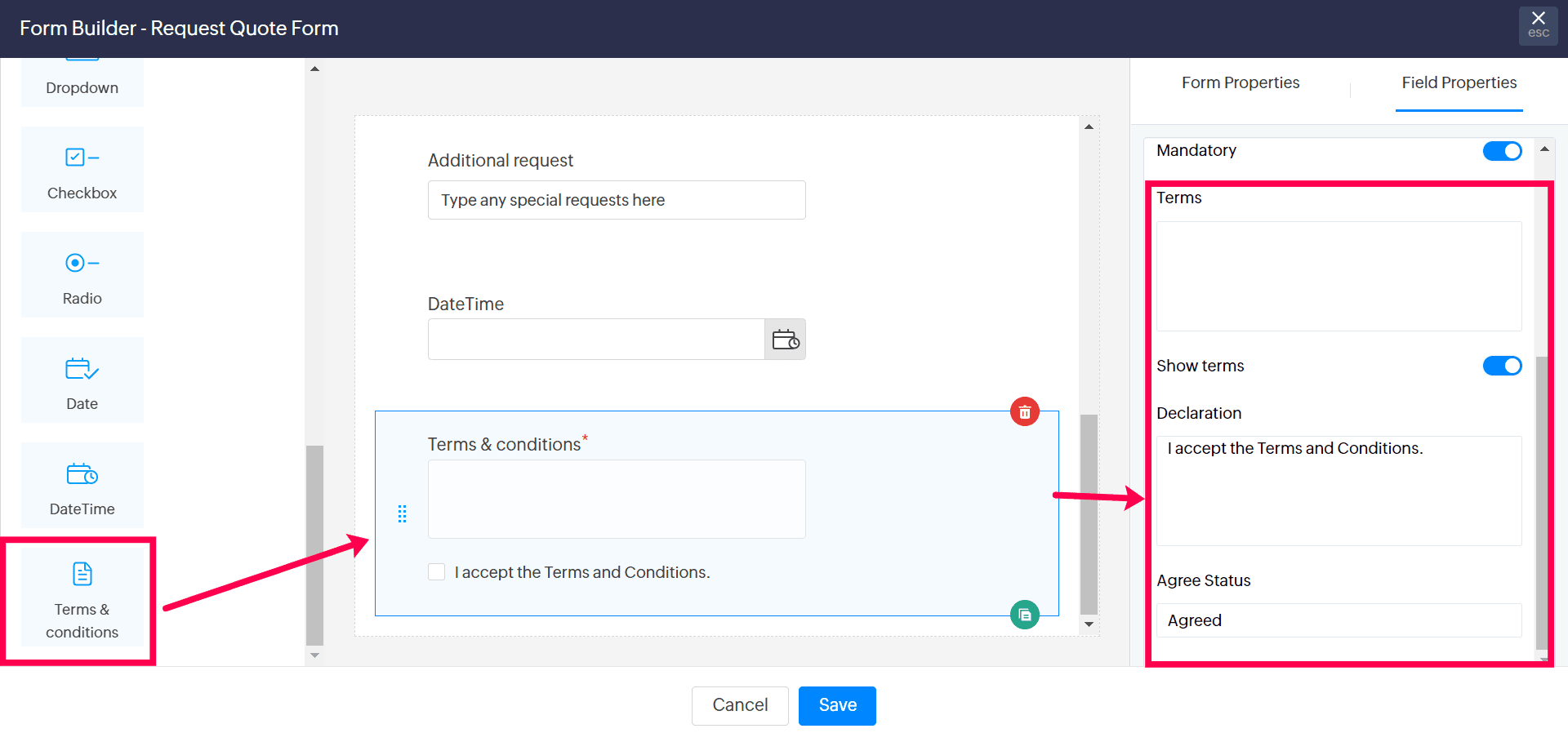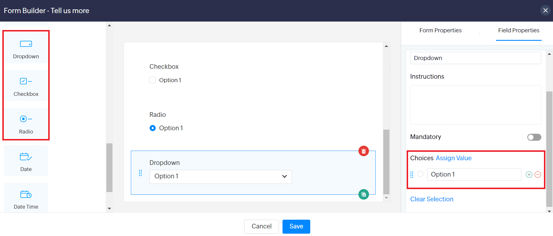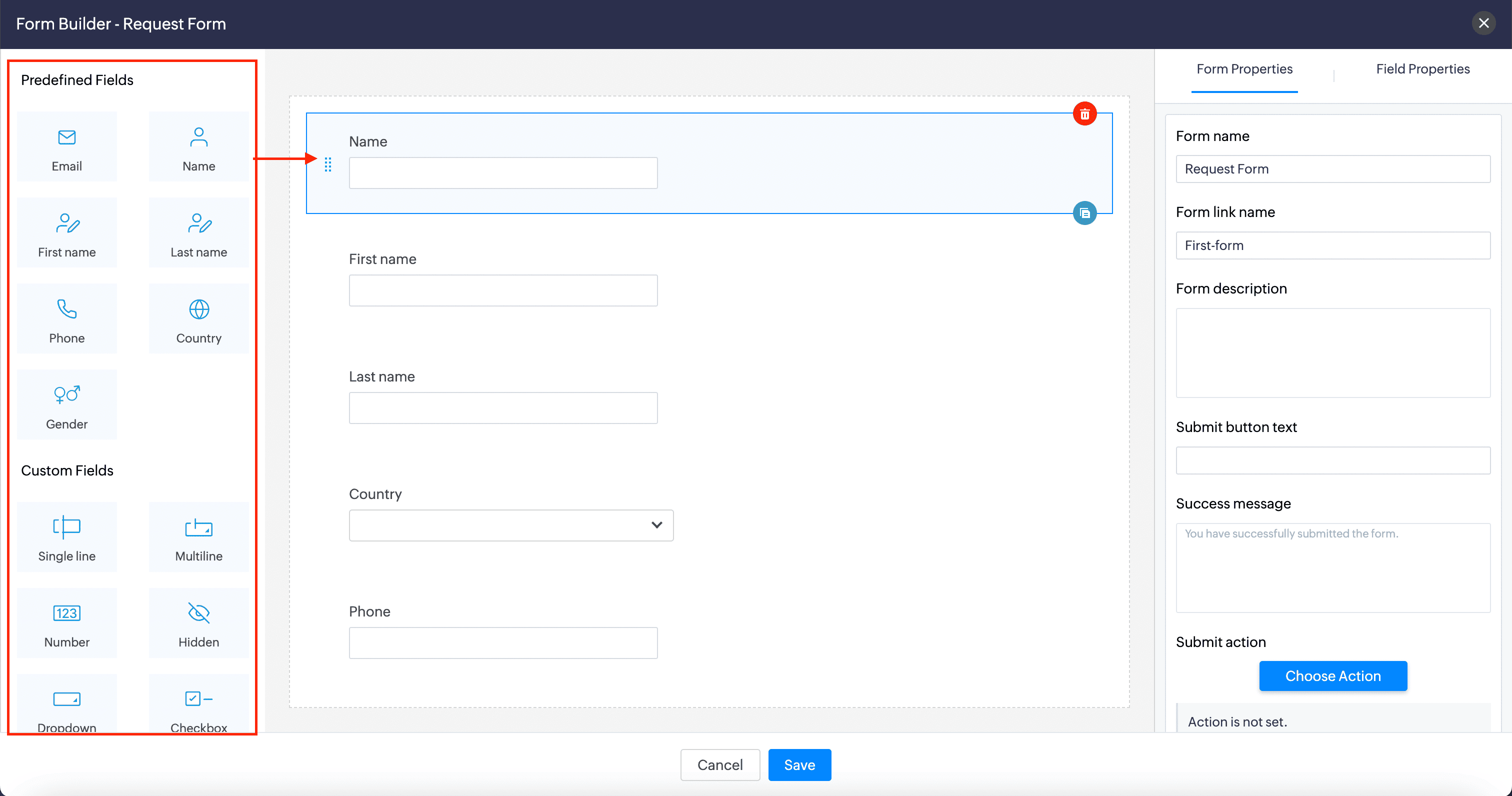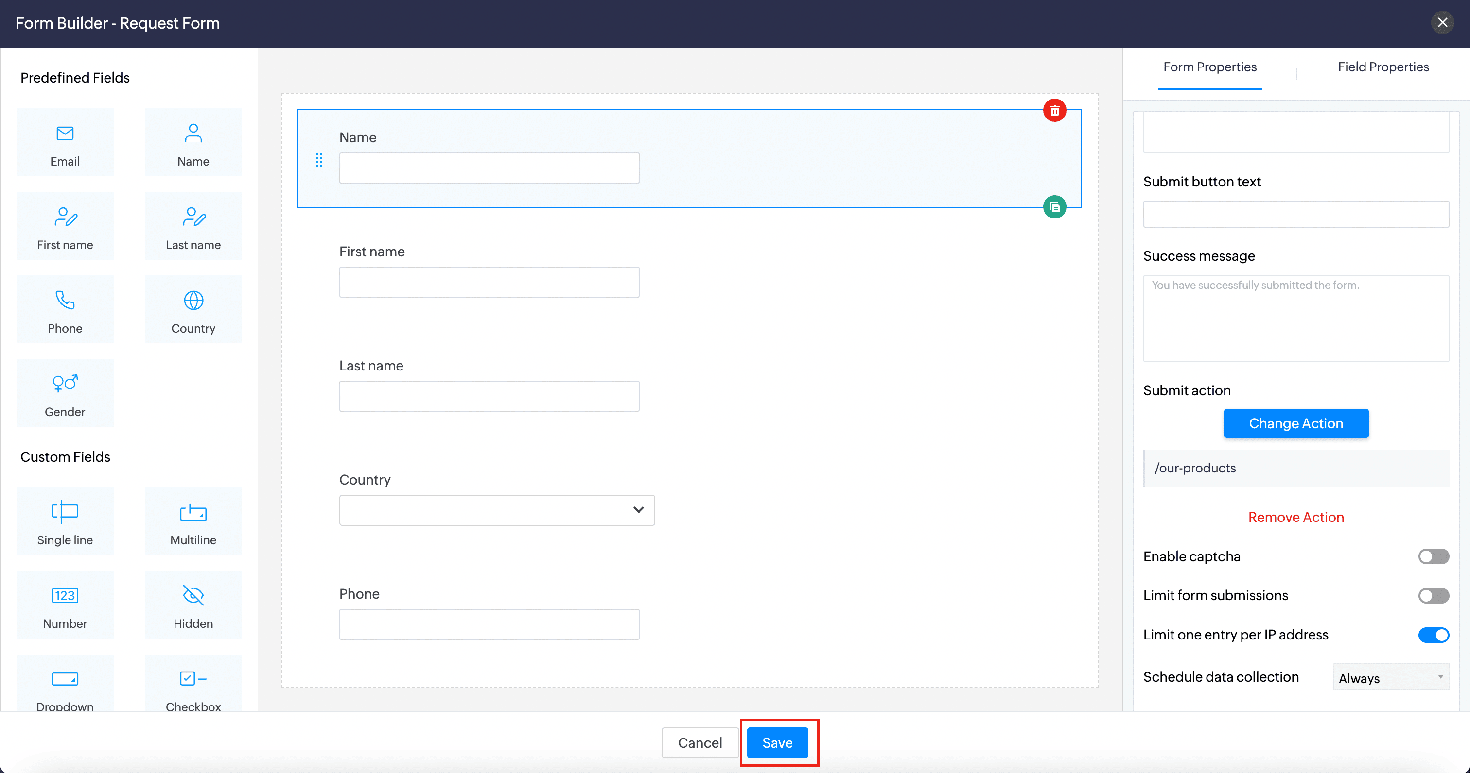 This section covers the unique properties of all the custom fields available in Zoho Sites Forms: