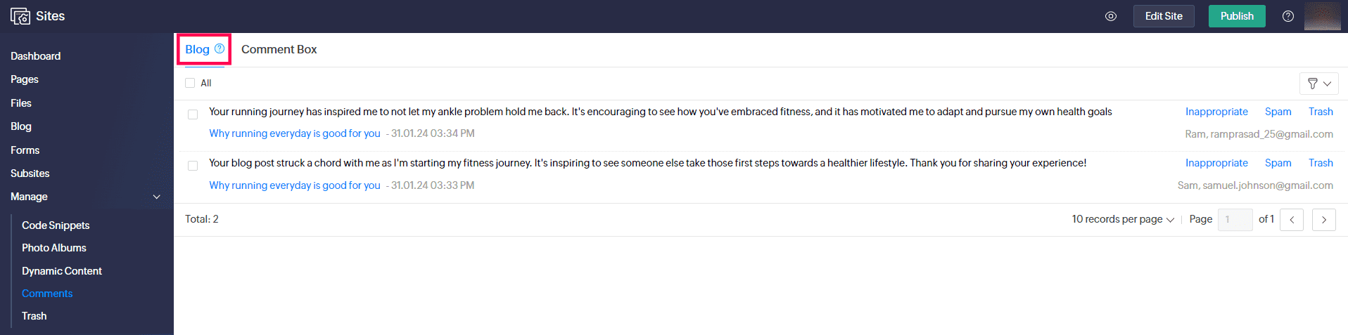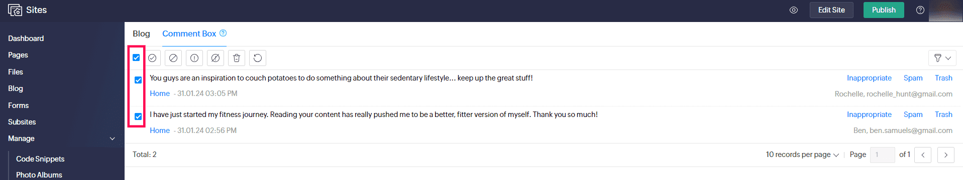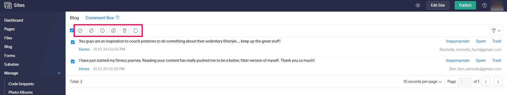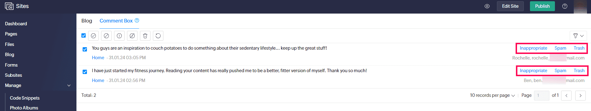 Comment boxes are a great way to improve interaction with your users. Note that you can only have one comment box per page. Let's see how you can moderate comments.