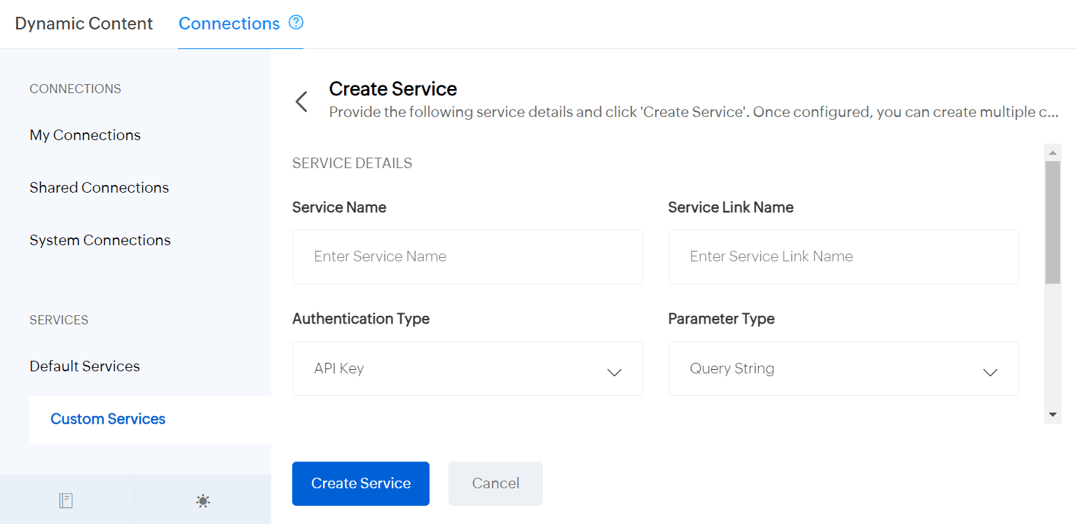 Service Link Name: The link name of the service to help you identify your custom service uniquely.