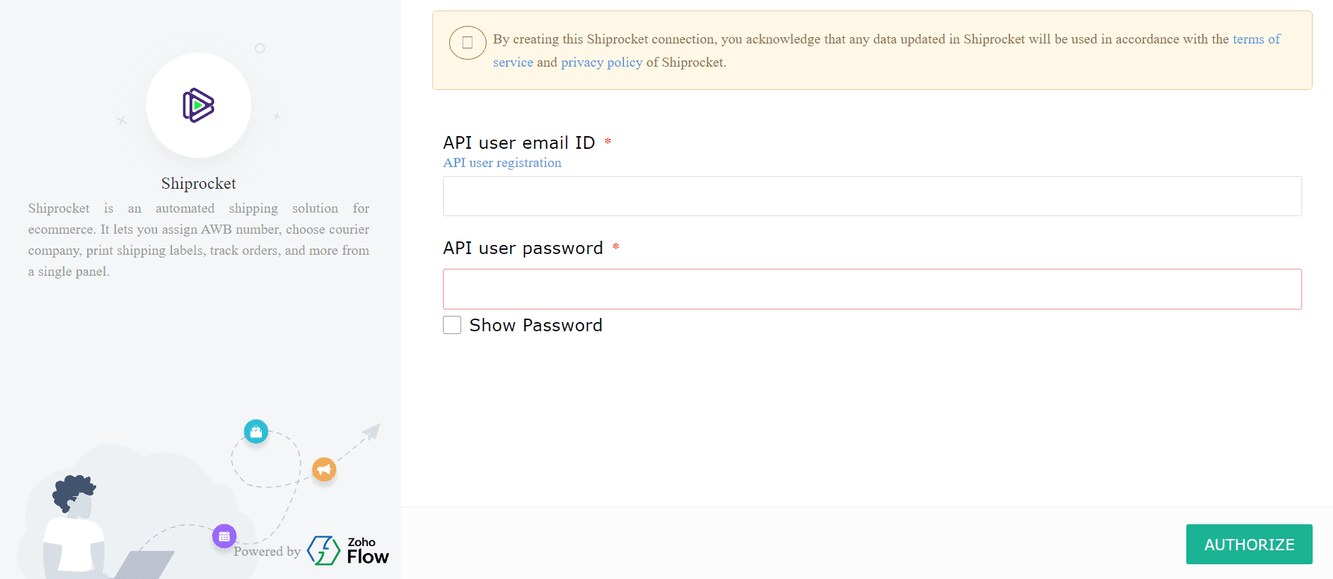 A user permissions dialog will pop up. Provide your login credentials and click AUTHORIZE. Alternatively, click Allow if you are already logged in to the service.