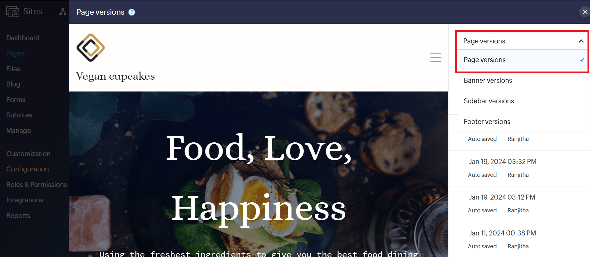 Similar to page versions, changes made to your site banner are also backed up and versioned. This allows you to switch to earlier versions of the banner with just a click. Let's see how you can revert to an earlier version of your website banner. ...