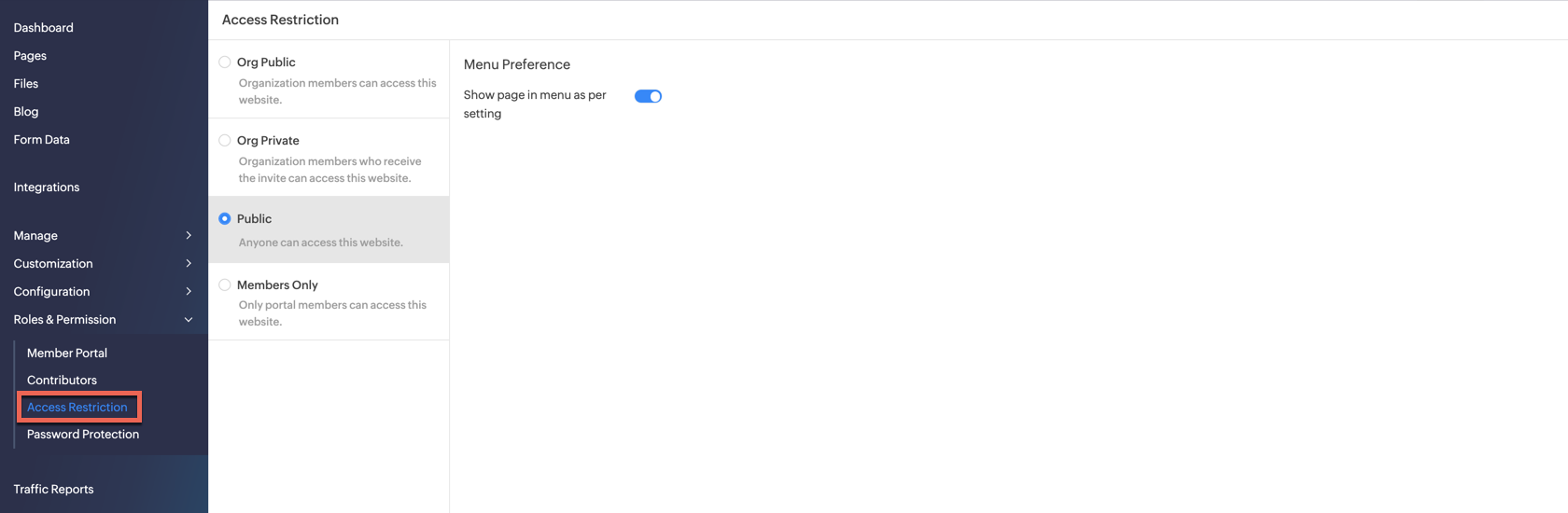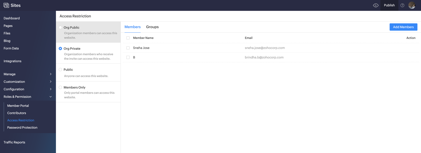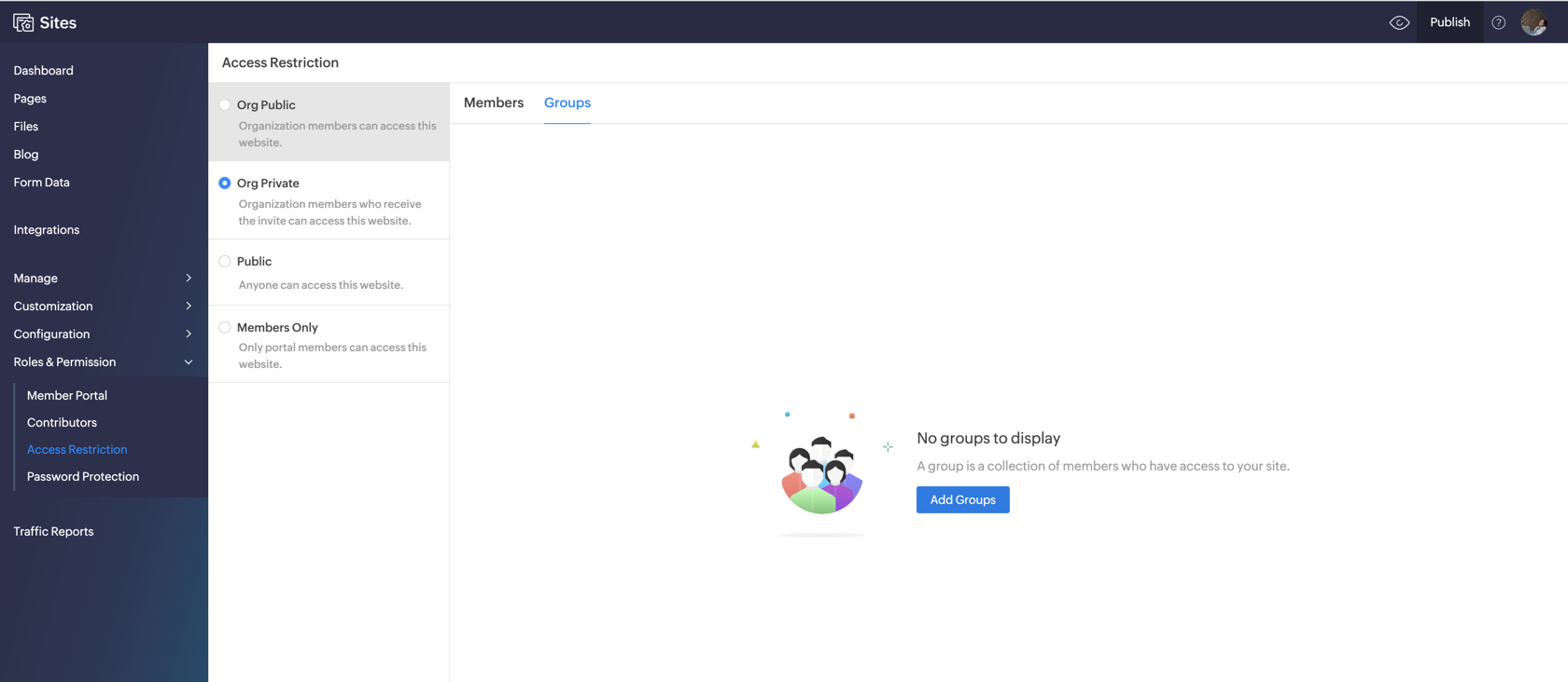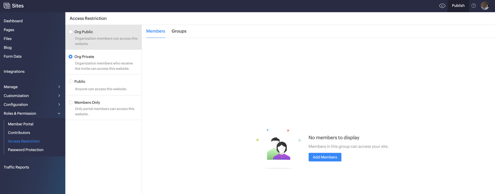 - Org Private: Only members from your organization with an invite will have access to the website.