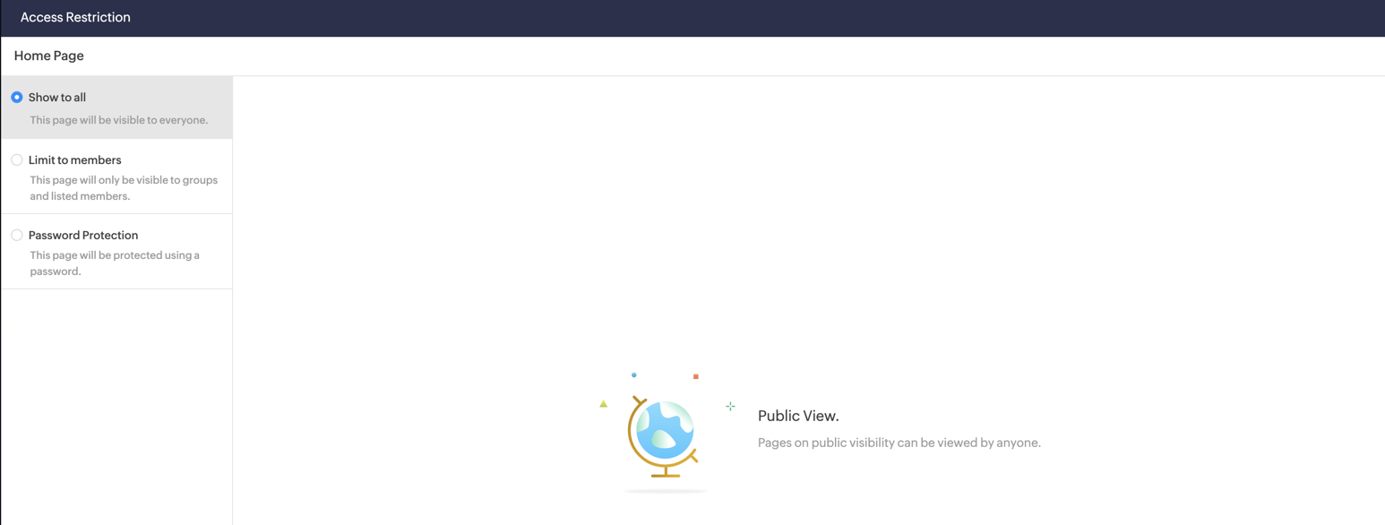 - Limit to members: The page will visible only to a selected list of members or groups.