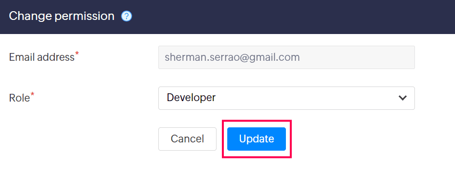 4. Select Role from the drop-down. You can choose between Guest, Author, Admin, and Developer roles.