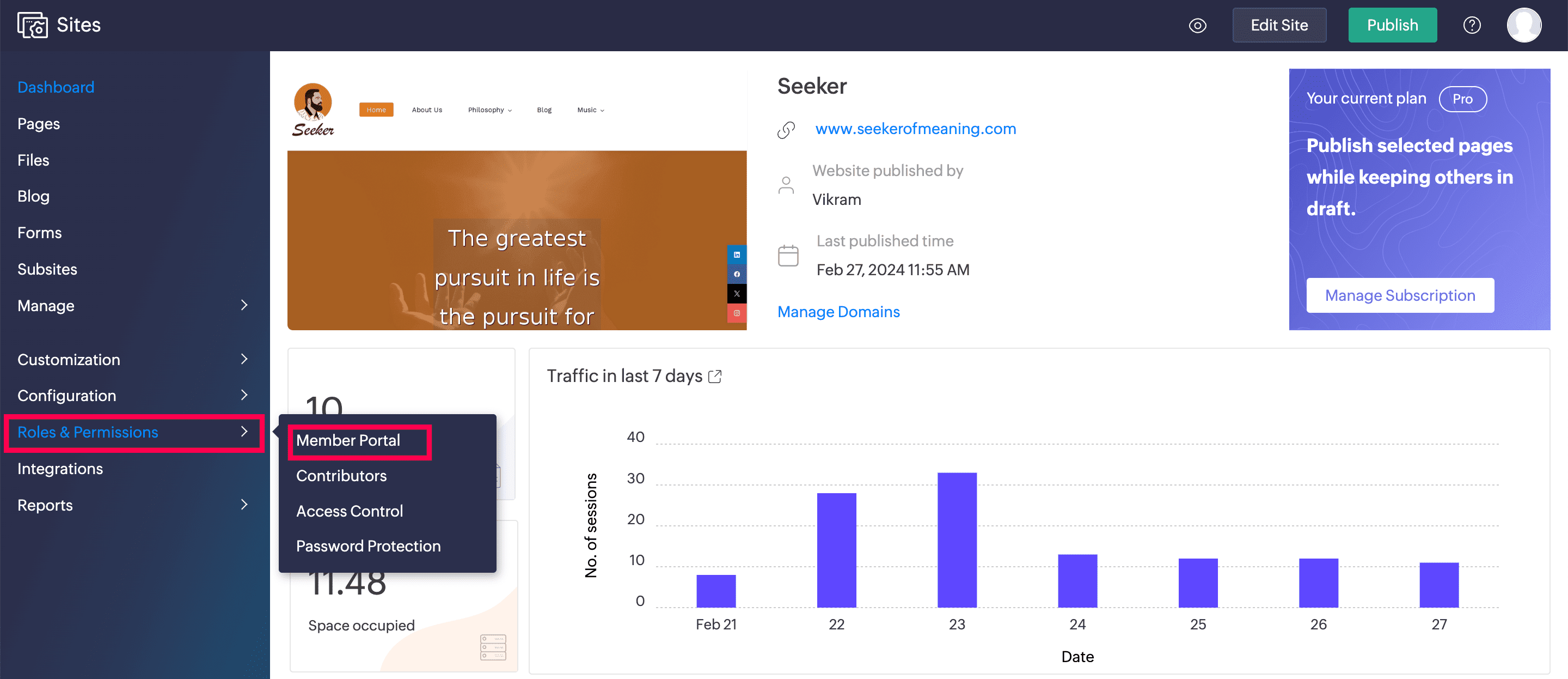 You can restrict the portal users from accessing your site. This way, users will be able to see your site only after they login into their accounts. To enable restriction: Go to Roles & Permissions -> Access Control. Select the Limit to members ...