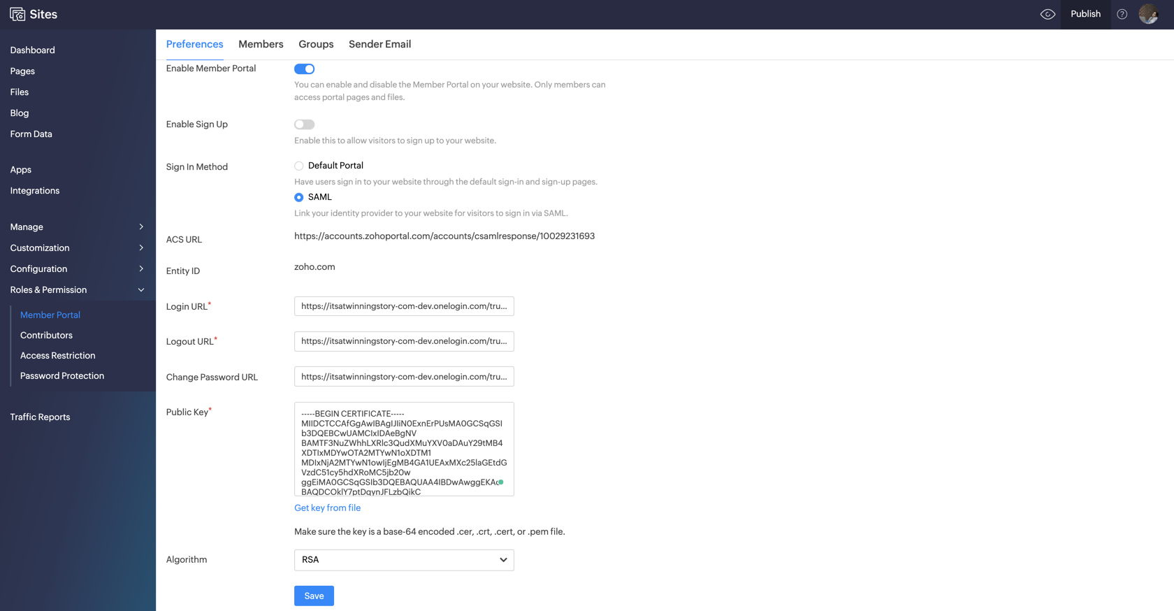Linking your SAML account to your site not only enables you to manage your visitor's login credentials but it also enables members of your website to access your member portal without being prompted to enter individual login credentials. To enable ...