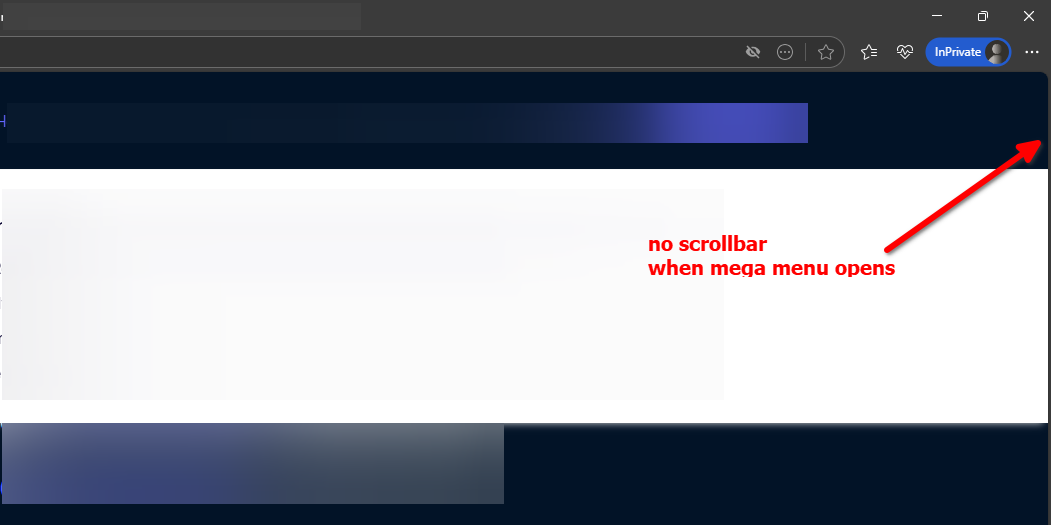 Hey there I am using the mega menu add-on and experience a "flicker" whenever the mega menu opens. The reason is, that the scrollbar, which has a width of a few pixels, stops showing when the mega menu opens. As the scrollbar disappears the whole page
