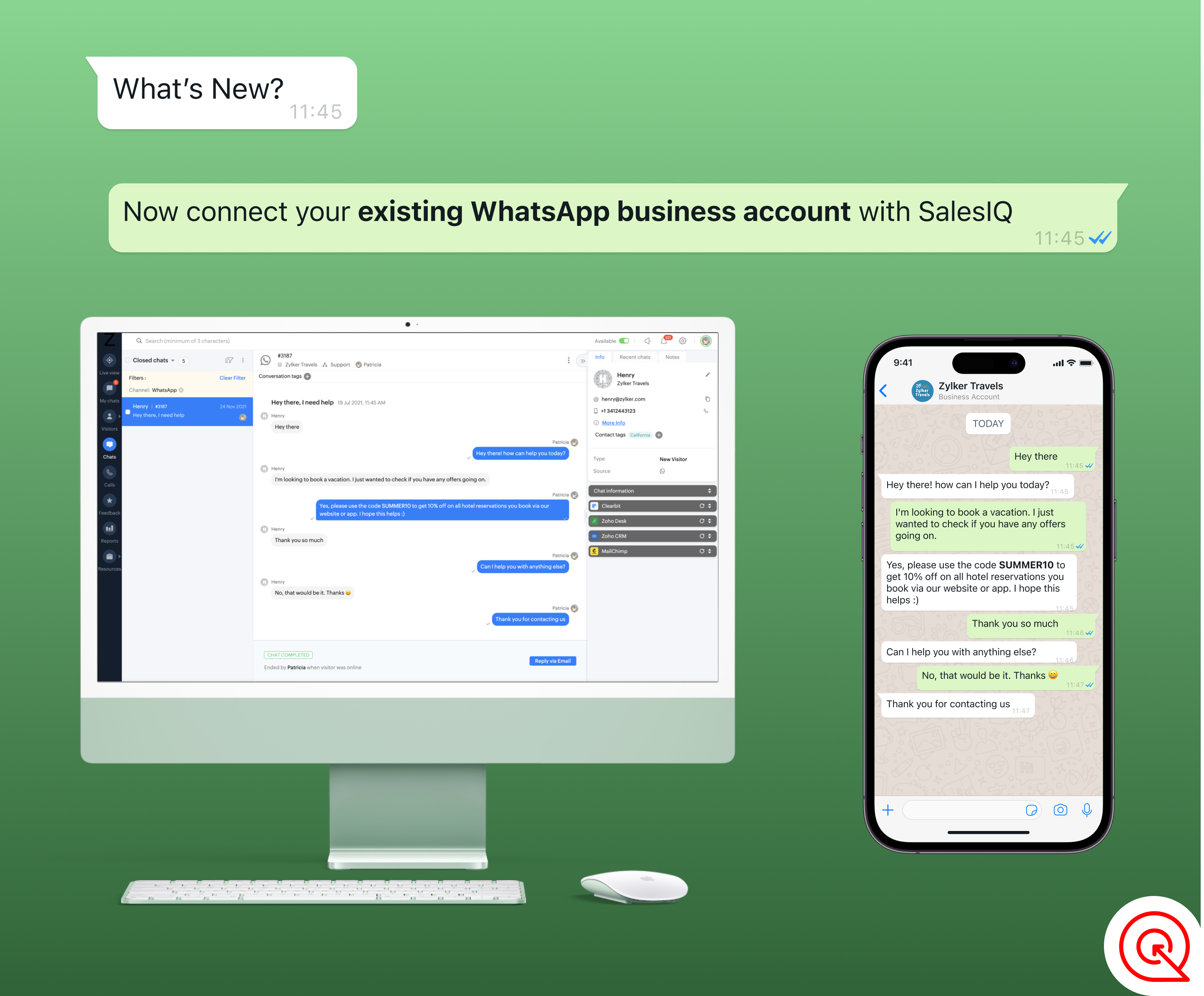 We had a great response from our customers for our SalesIQ - WhatsApp channel that we released a while back. The WhatsApp channel used Twilio, a third-party app, to connect your SalesIQ portal to WhatsApp. However, there were a few limitations, and one of the main limitations was that the users could not connect their existing WhatsApp business account number with SalesIQ.