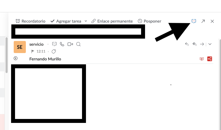 When I click the "Start a chat over an email feature" everything works perfectly (I'm pointing with an arrow the feature that we usually click).