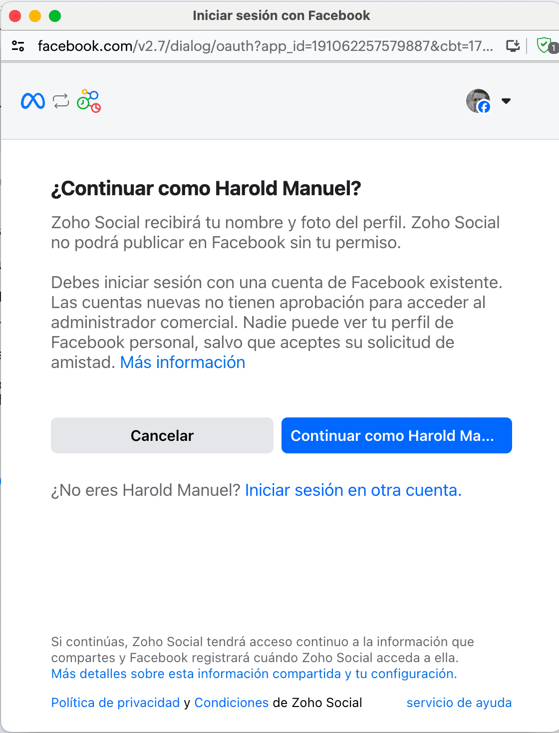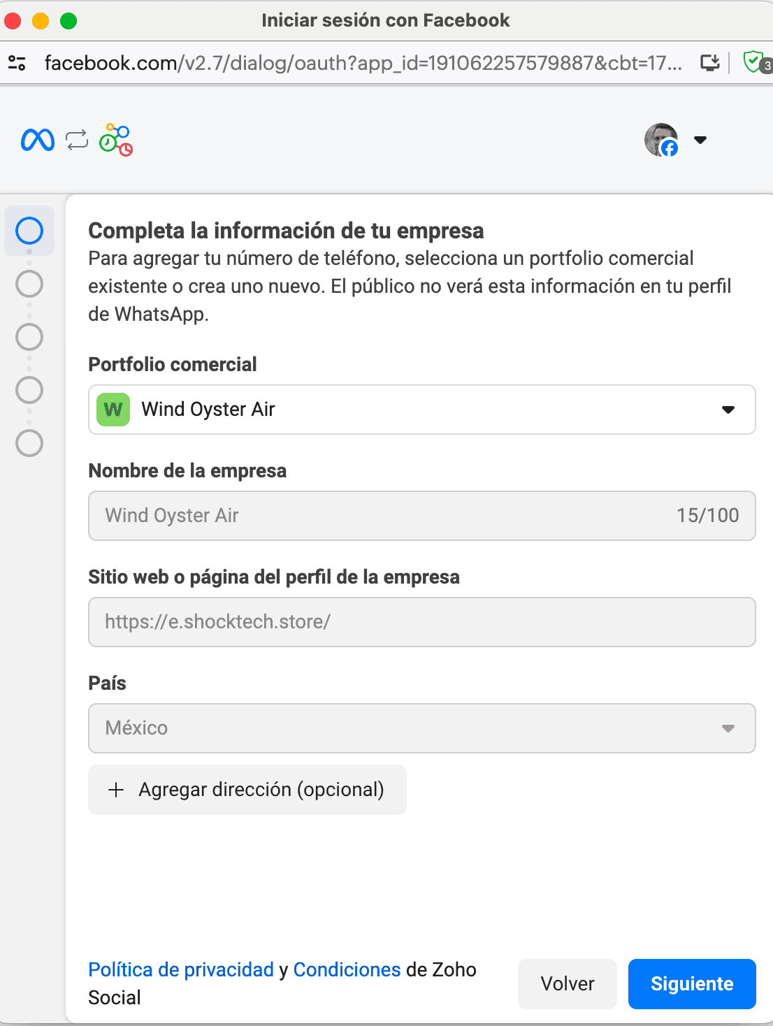 En la página de solicitud de acceso a WhatsApp, inicie sesión con las credenciales de Facebook Business Manager.